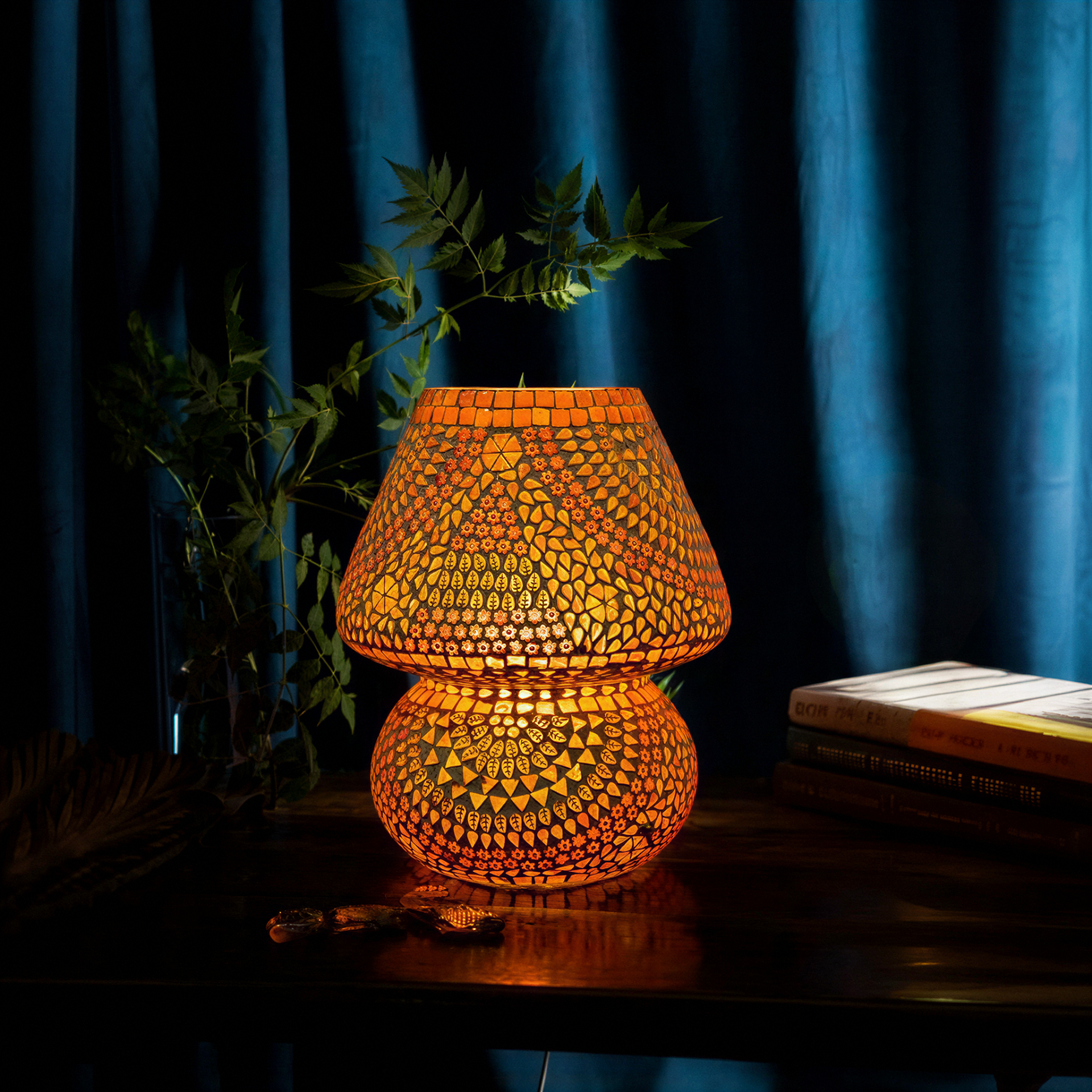 - Great Product for Gifting Purpose and Decorative art. Handcrafted with Glass Mosaic beads by experienced and Talented Artisans as per the design. These Glowing Glass Lamps are made with the Glass Beads Placed on the Top of GLass Raw Lamp to give the Amazing Lighting when switched on for the best ambiance around you.