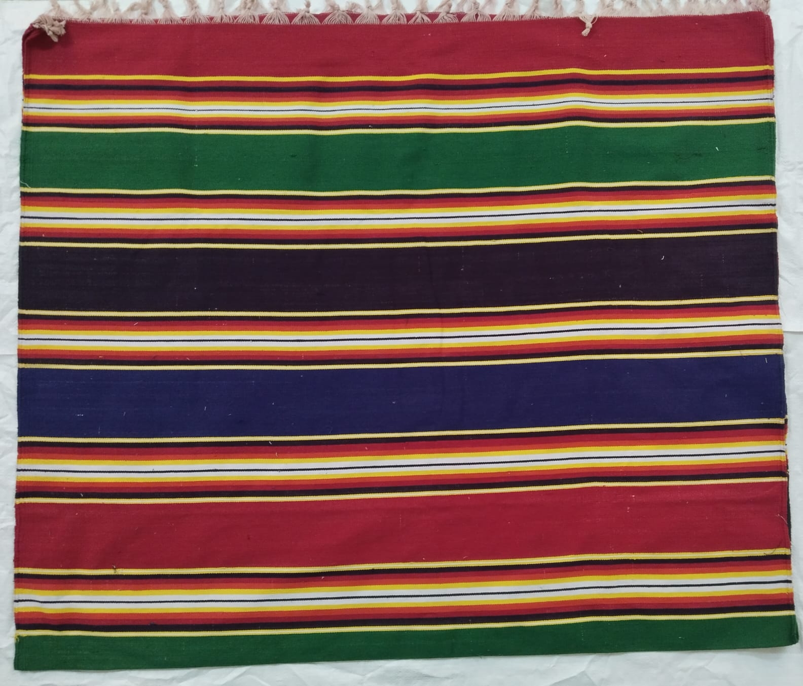 it is plain thick durries manufactured in salem district of Tamilnadu. It is woven with coarser cotton yarns enabling weavers to weave different kind of designs which are mostly limited to stripes (coarser) in horizontal direction developed with the use of different colored weft yarns.