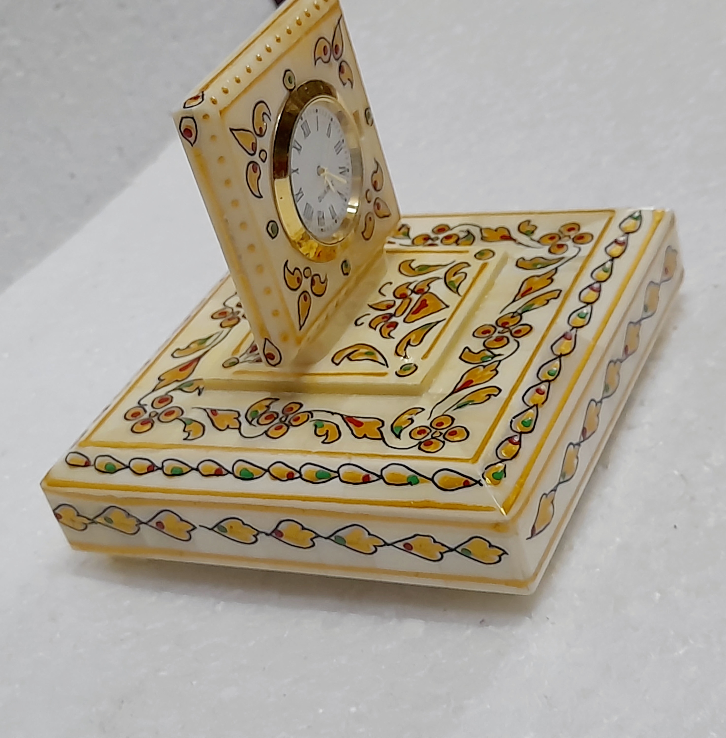 A Handcrafted Bone table watch/ Desktop Clock. This is a unique clock which give Antique Touch for your sweet home, there is bone crafted with beautiful emboss painting look so pretty.