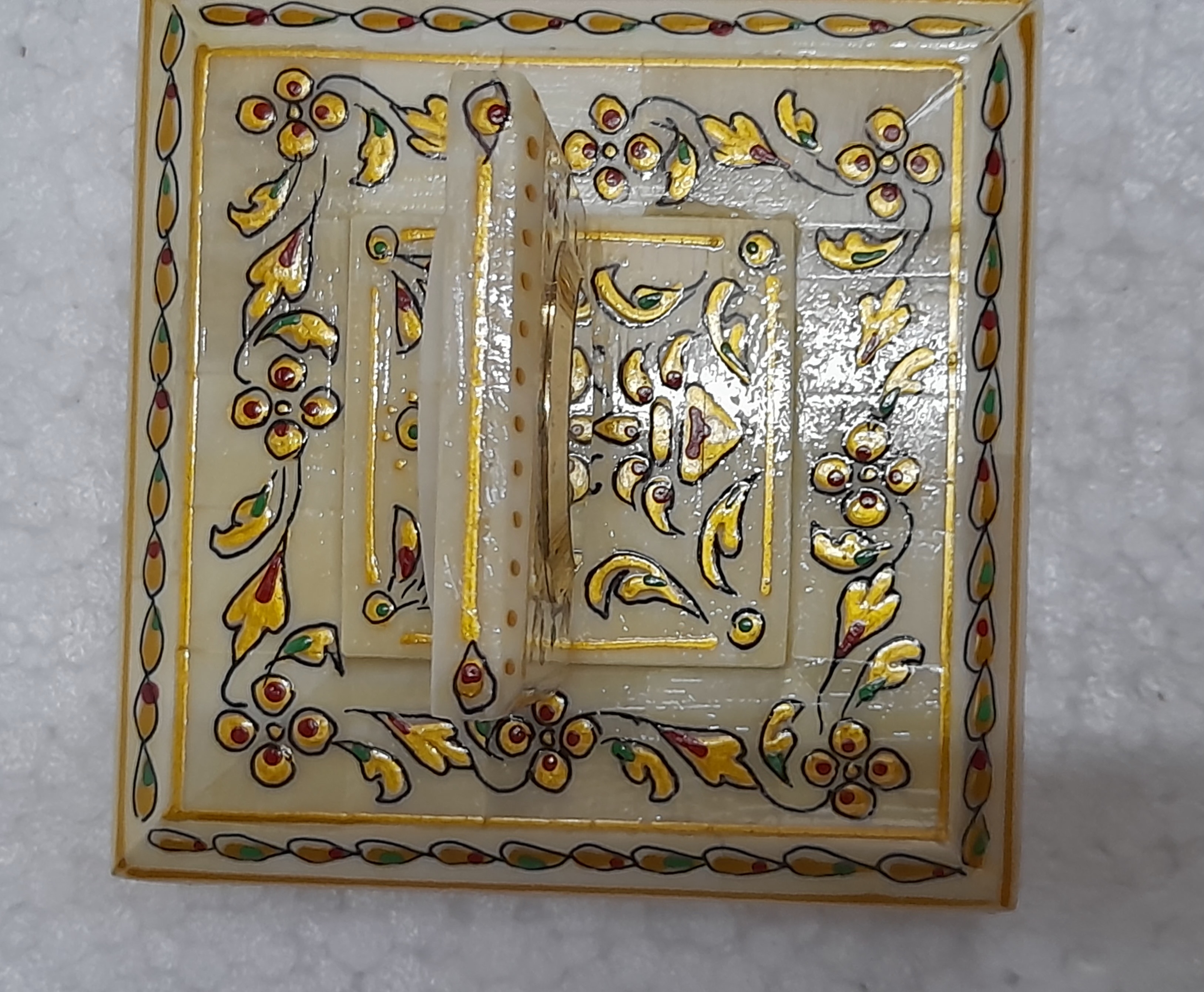 Experience the exquisite handicraft of India with this Handicrafted wooden base bone crafted table watch present by Indiahandmade, this beautiful desktop clock made with bone design with emboss painting golden in colour. Size; Dia-10.5