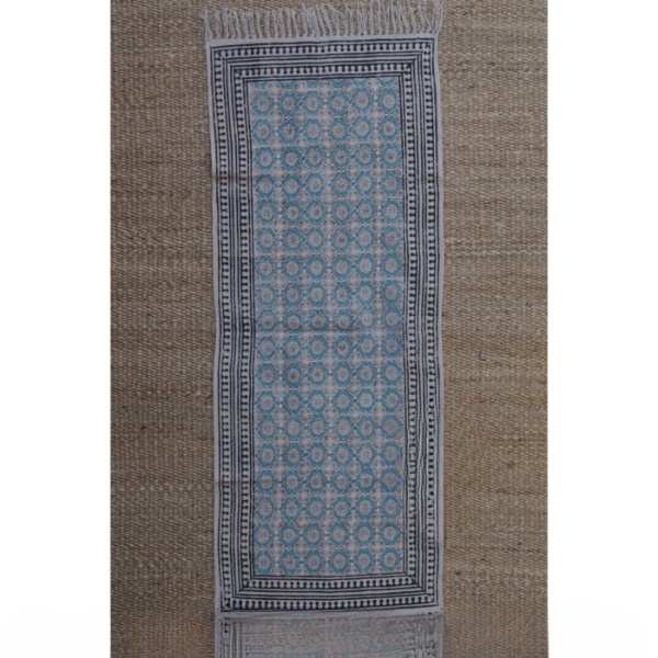 Hand Block Prints Bedsides Rug | 60x150 cm | Blue
