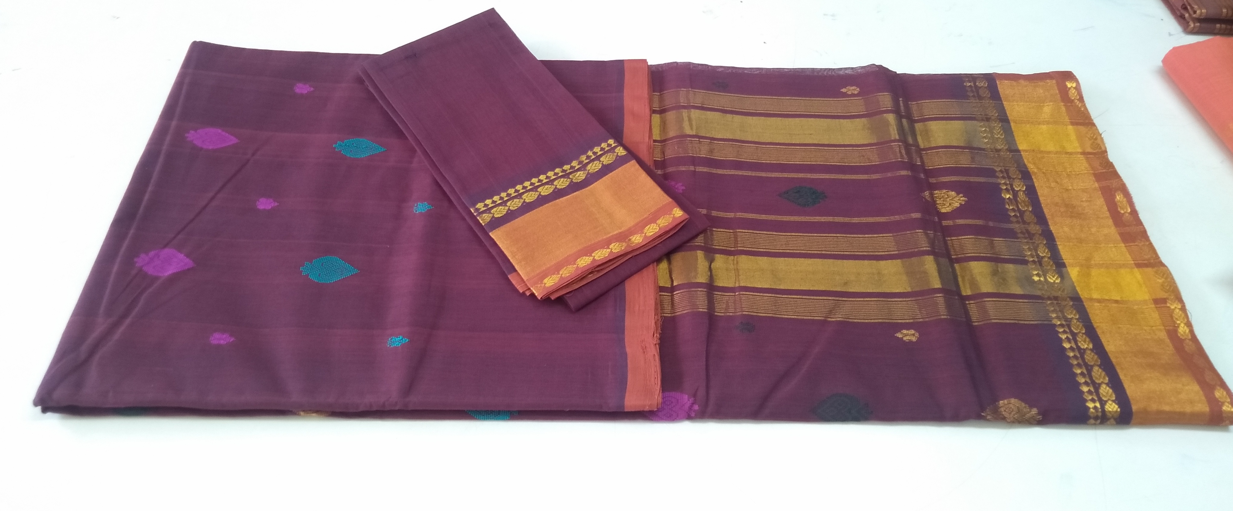 The Jayankondam Cotton Sarees most famous in Tamilnadu. The sarees are woven with traditional design and using pure cotton yarn for warp and weft.
