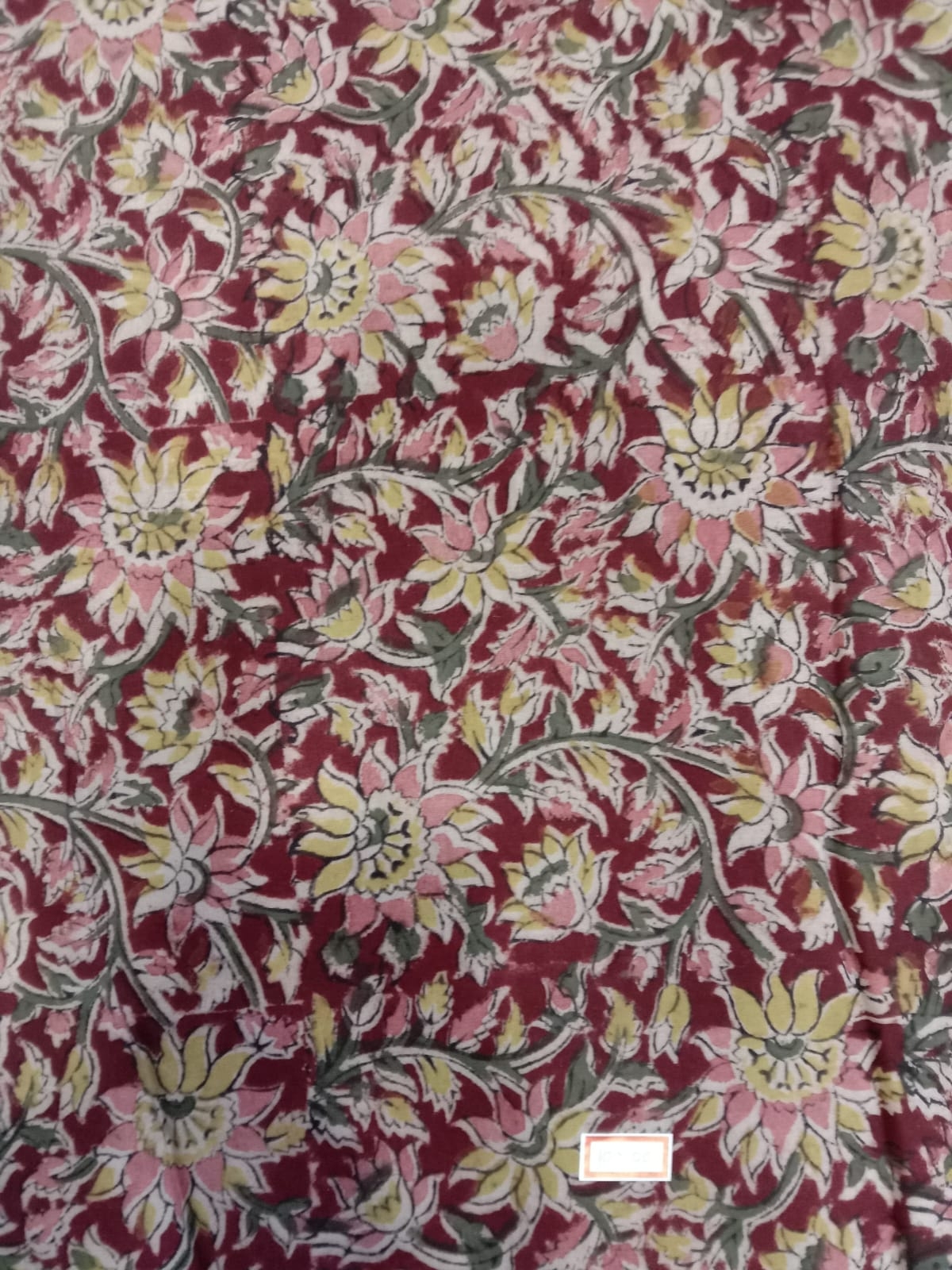 Kalamkari Hand Block Print Cotton Cambric Fabric | Deep Red | 1 Meter