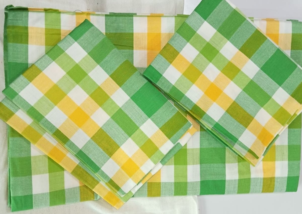 Kannur Cotton Bedsheet Yellow Green checked 90 x 90 size