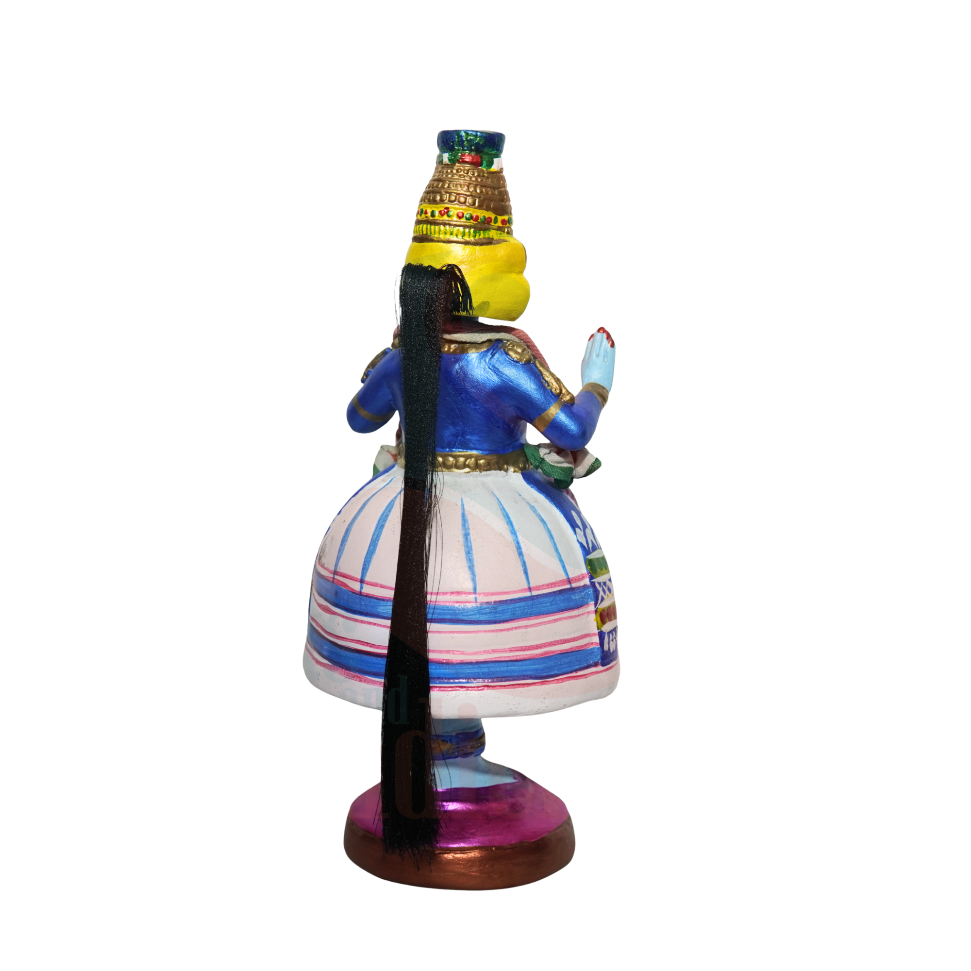This doll beautifully blends Thanjavur’s bobble-head craft tradition with the majestic Kathakali costume and expressions, making it a prized piece for: