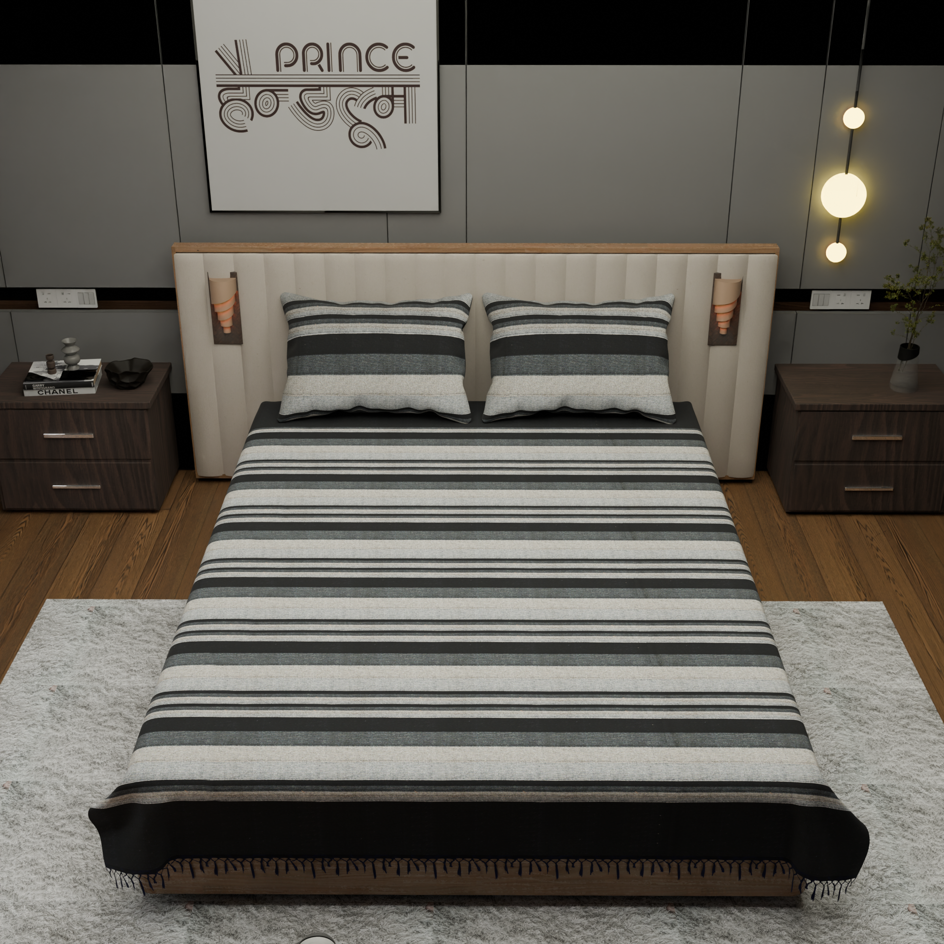 Kerala Handloom Double Bedsheet Cotton with Pillow Covers | Striped