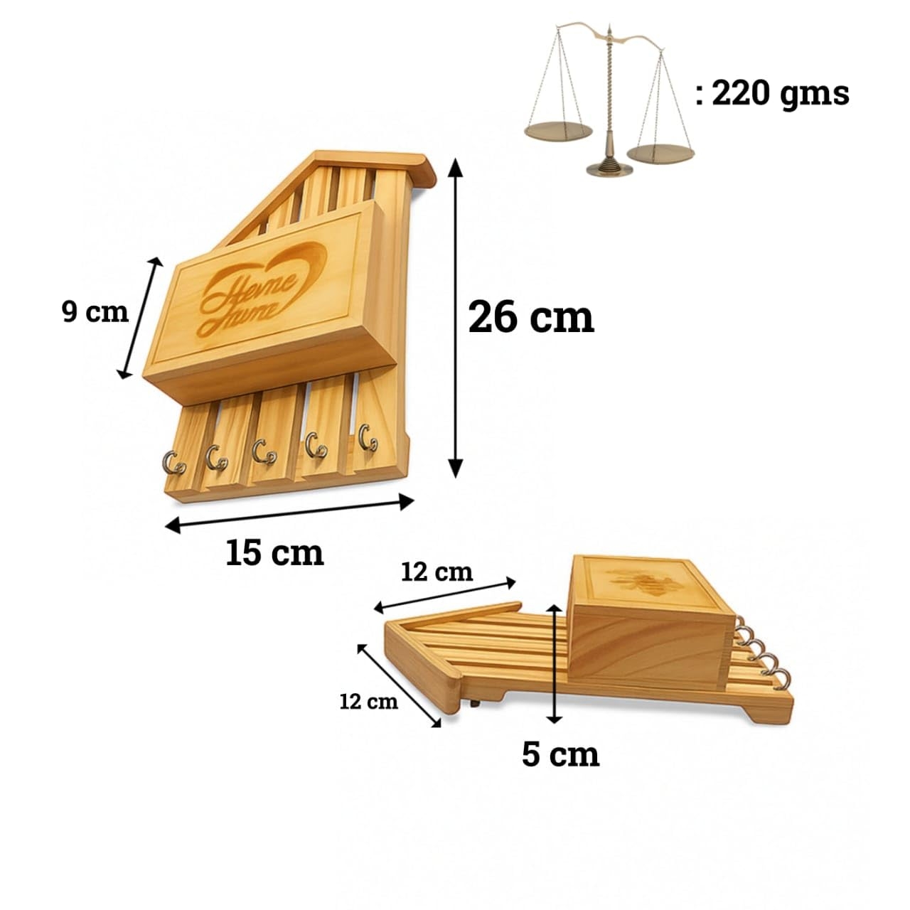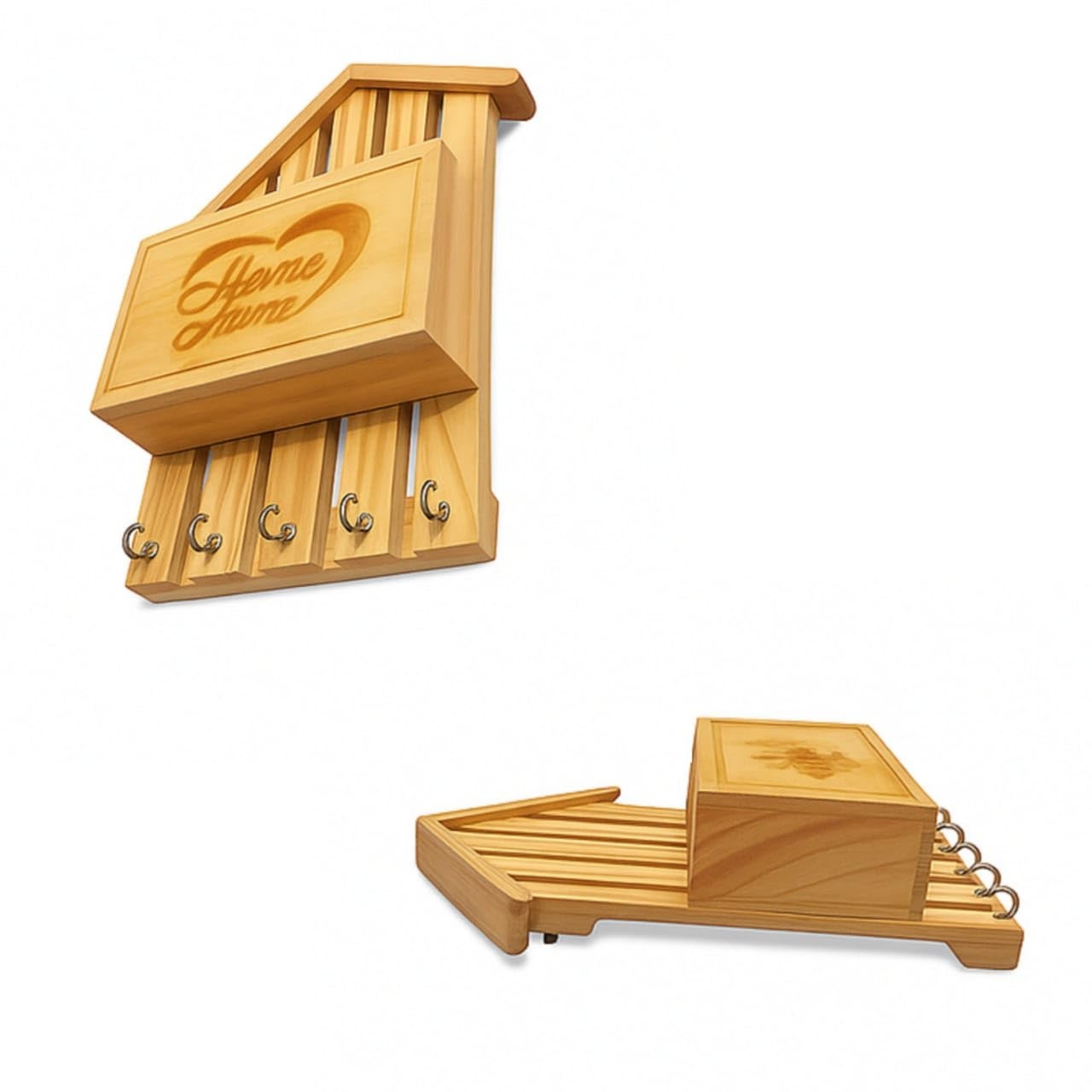 Keep your keys and small essentials safe with this handmade wooden key holder featuring a storage box and multiple hooks. Designed for wall mounting, it serves both as a utility product and a home decor piece. A perfect choice for housewarming gifts, festivals, and everyday use.