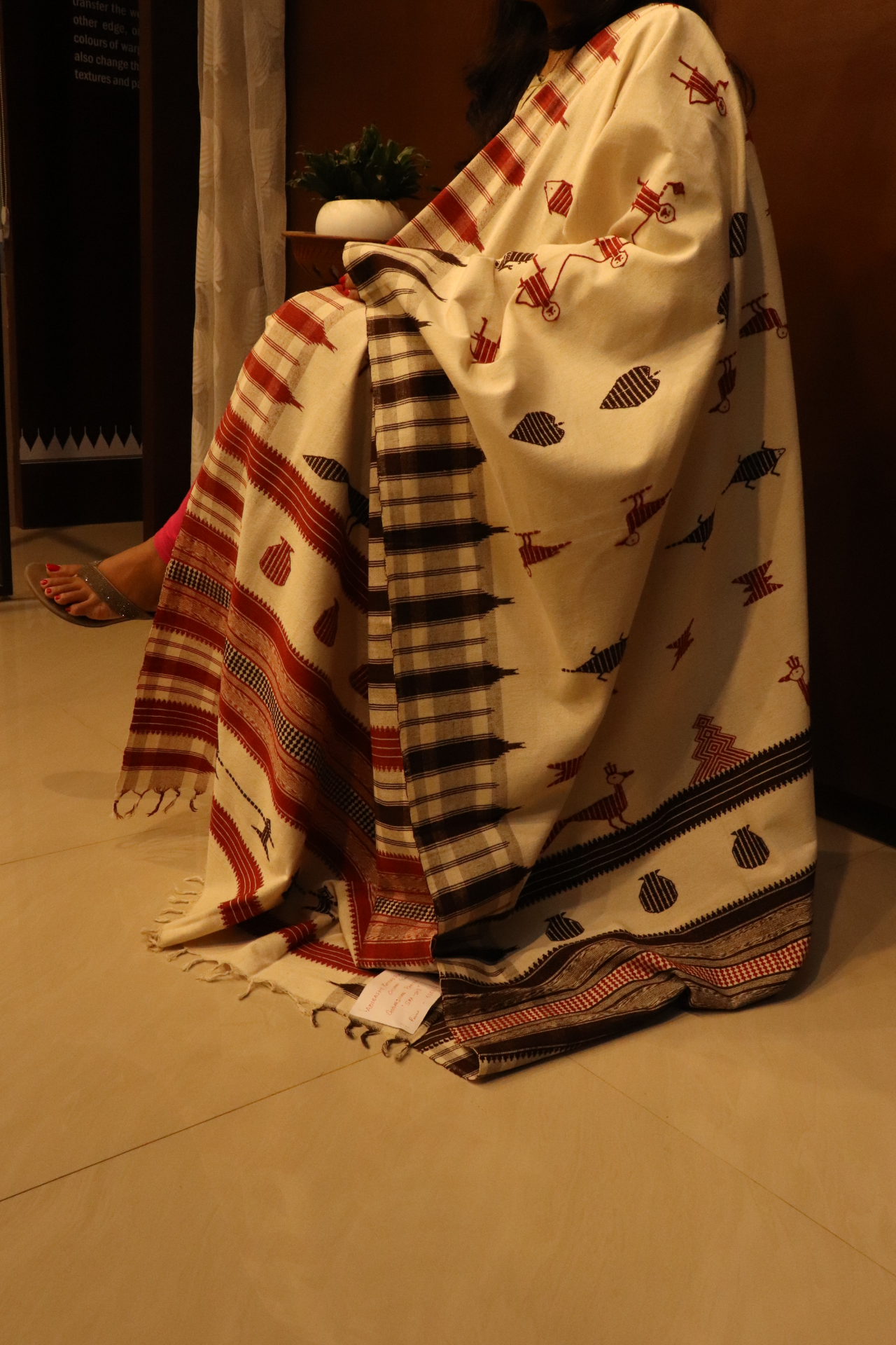 Kotpad Ganga Jamuna Chunni has 40s single cotton in warp & 40s (2 ply) single cotton woven with extra weft 3 shuttle technique.