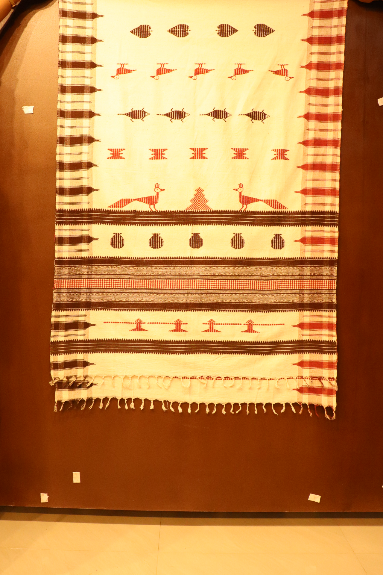 Kotpad Ganga Jamuna Chunni is one of the best creation of Shri Gobardhan Panika, Padma Shree Awardee from Koraput, Odisha. Phuta/Phoda Check Chunni are woven in pure cotton. Aal Dyed (Natural Dyed) kotpad scarf is a popular product of Kotpad and is regitered under GI Act.