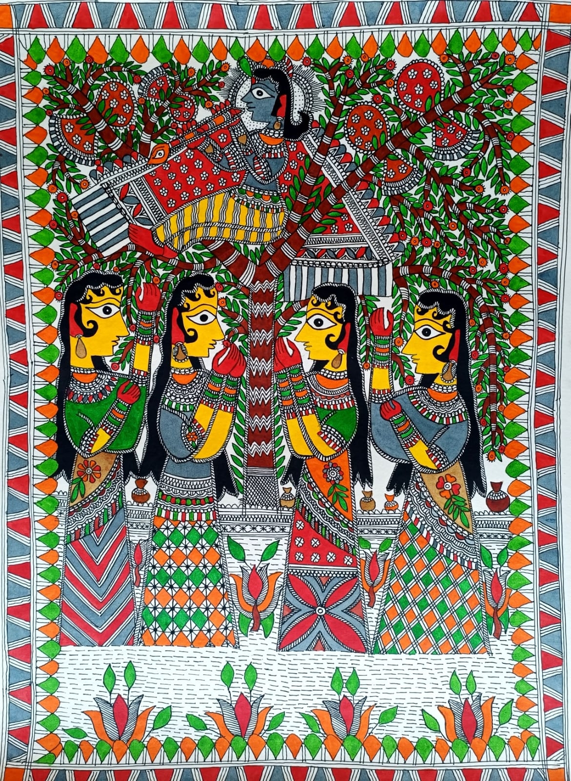 Handmade Krishna Gopika Madhubani Painting | Multicolour | Without Frame