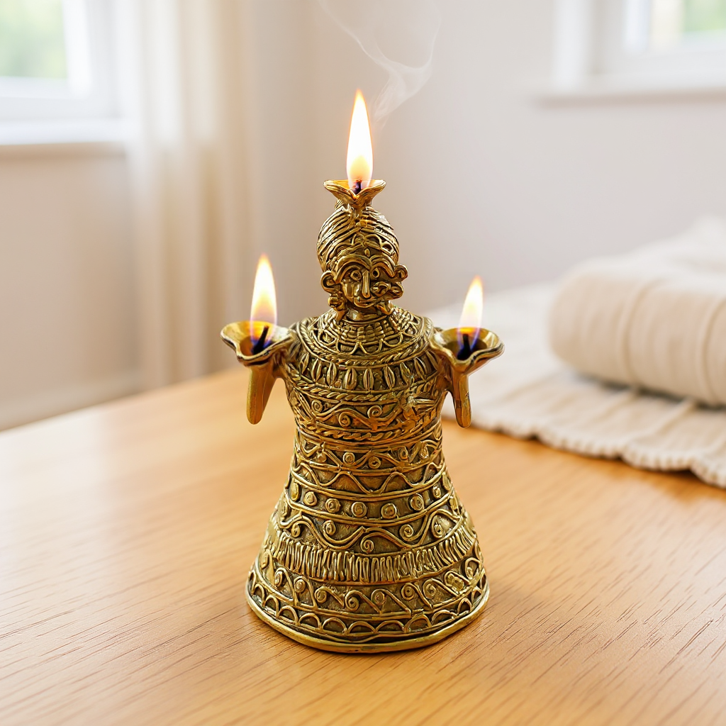 Lady Three Diya – Puja Accessories – GI Certified Bengal Dokra