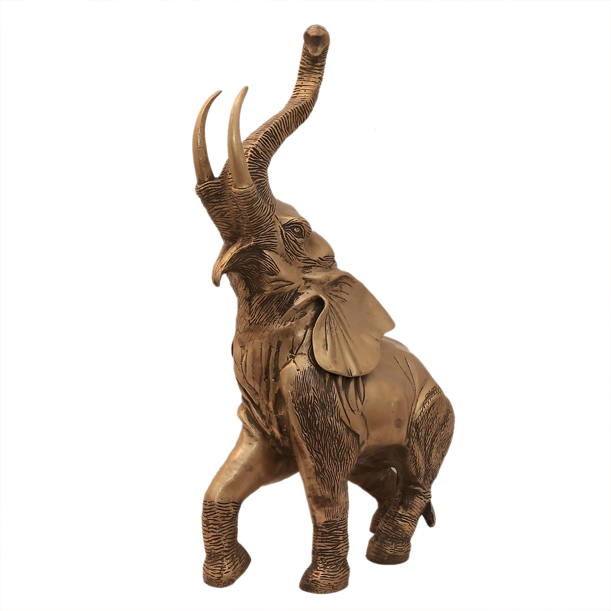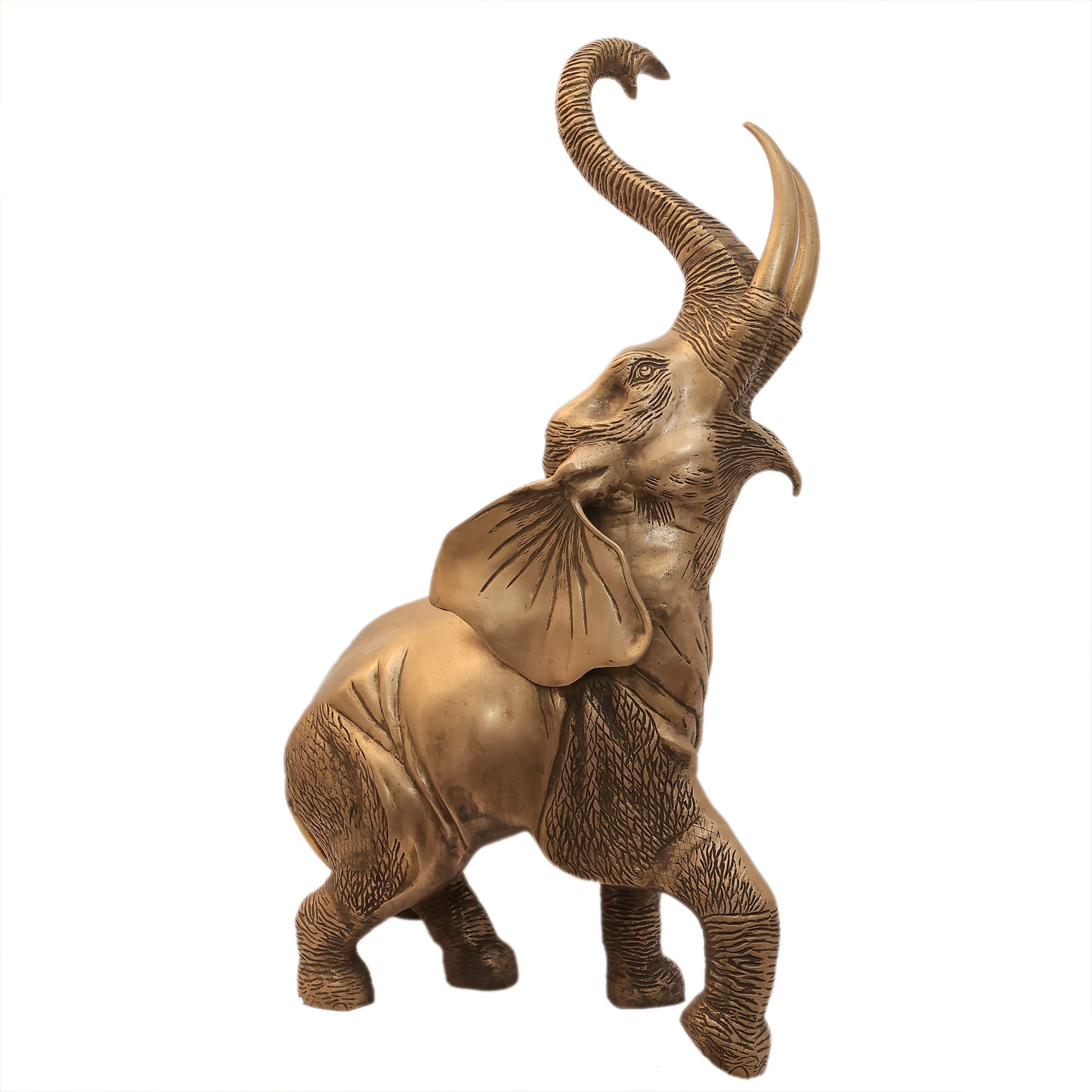 Add a grand and royal touch to your space with this Large Brass Wild Elephant Statue. Crafted from high-quality solid brass, this premium showpiece features detailed craftsmanship and a majestic design that reflects strength, elegance, and tradition.
