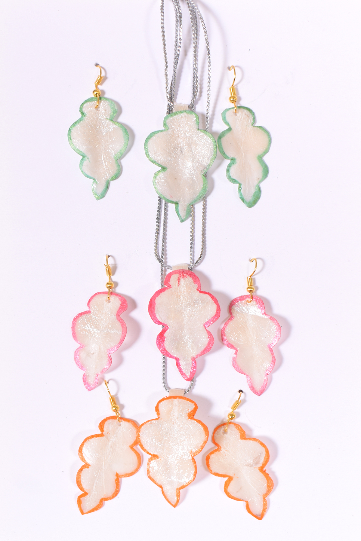 Handmade Pendant with Earrings Set | Leaf Design | Multicolour | Set of 3
