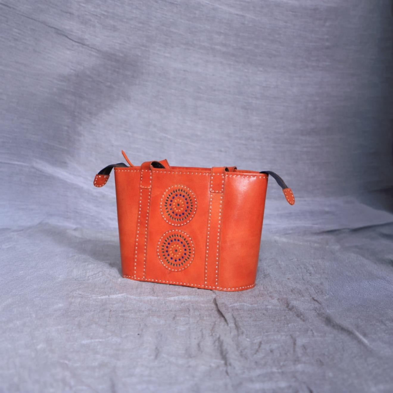 Gujarat State Awardee Shri Anchalbhai Bijalani from Kutch Gujarat. Is into handicrafts of this beautiful leather bags.