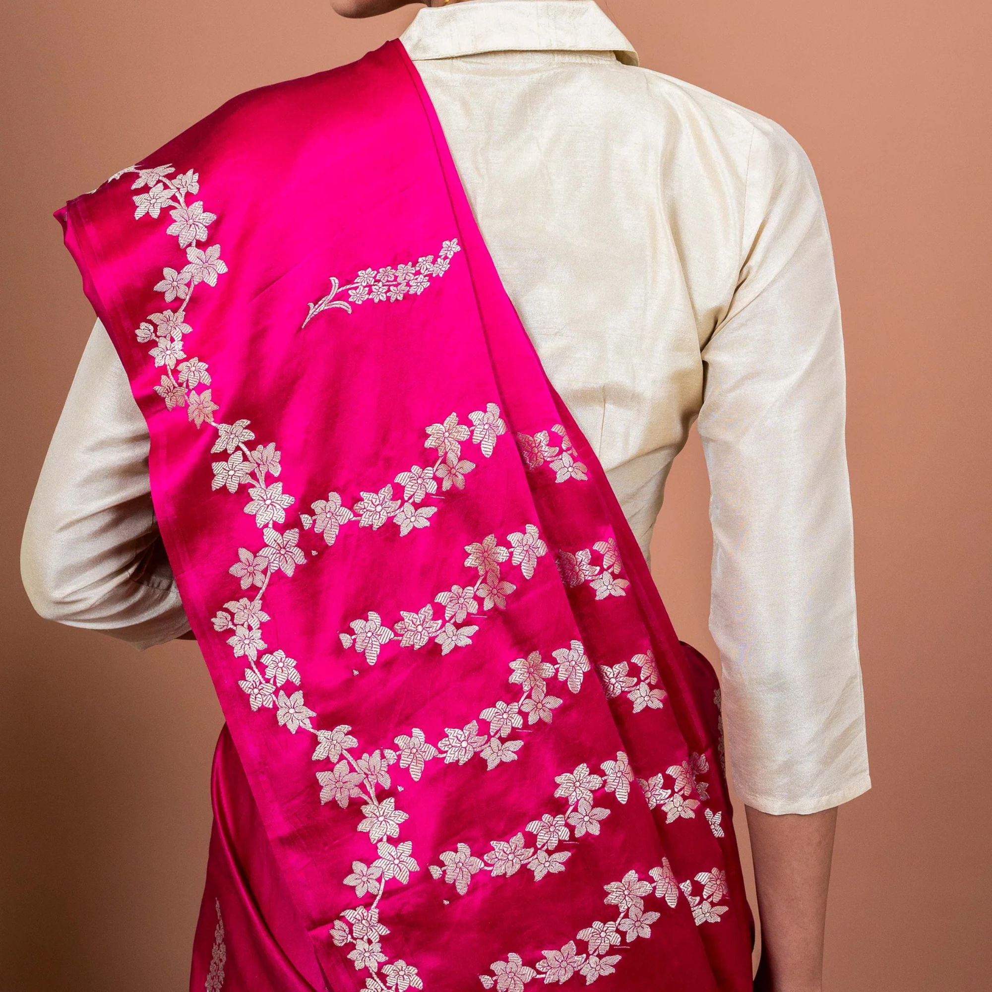 Lehar Boota Handwoven Banarasi Saree Magenta