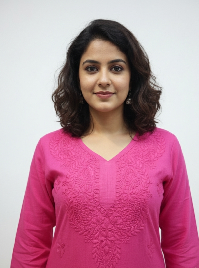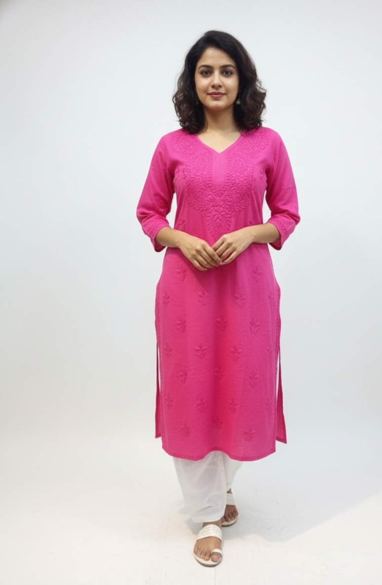 Long Magenta cotton colored kurta with chikankari embroidery. perfact for office casual and festive wear. soft fabric ensure all day comfort. pair it your feavrite bottoms.