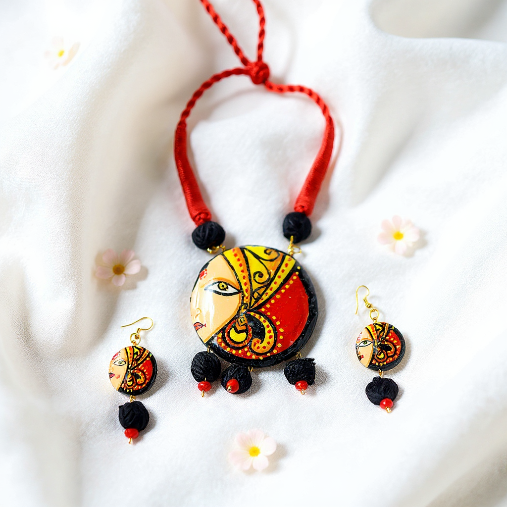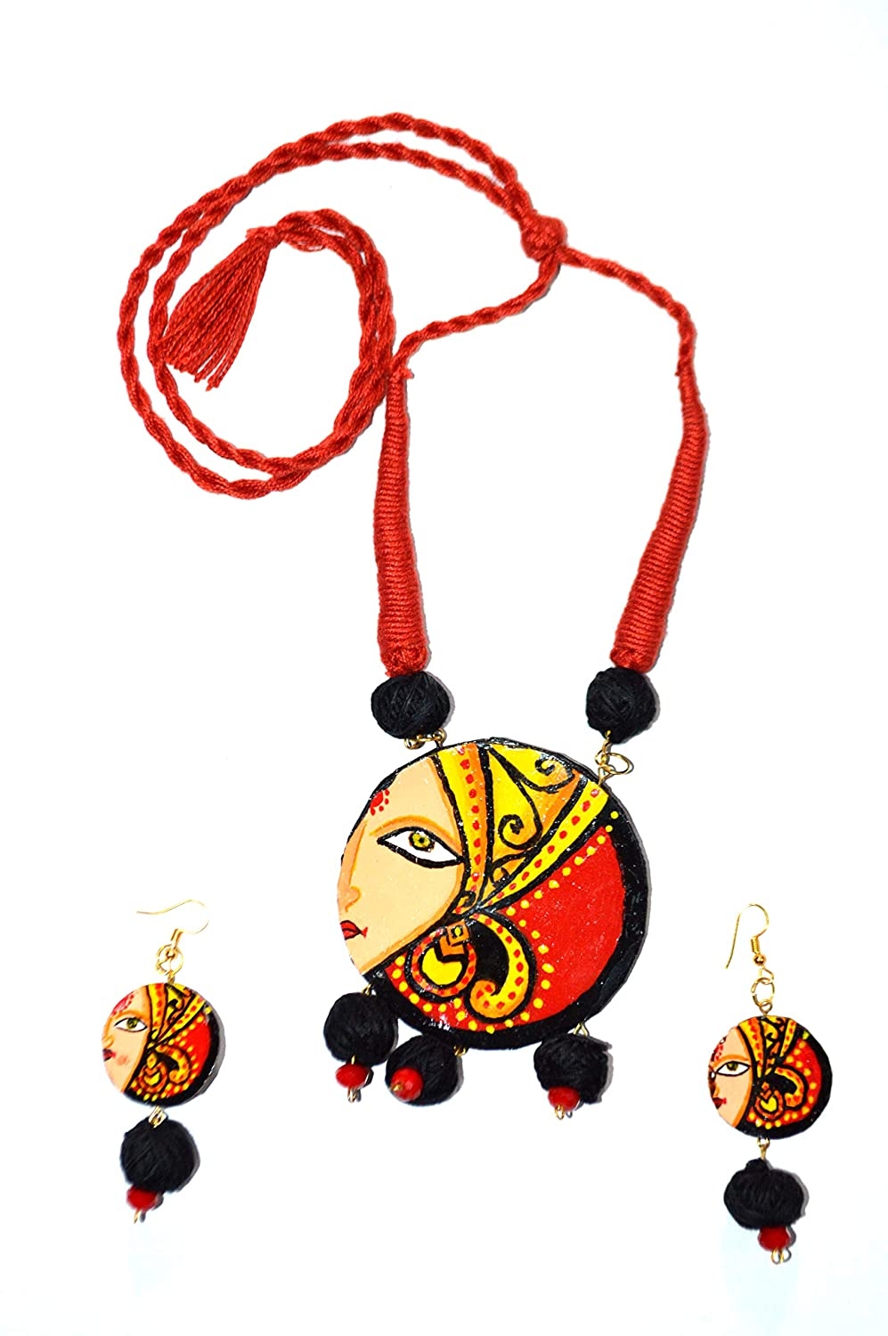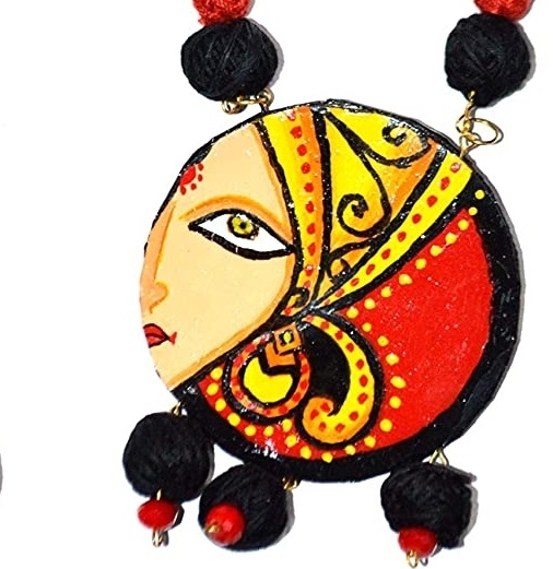 Maa Durga hand painted necklace set, multicolour light weighted fully eco-friendly necklace set.