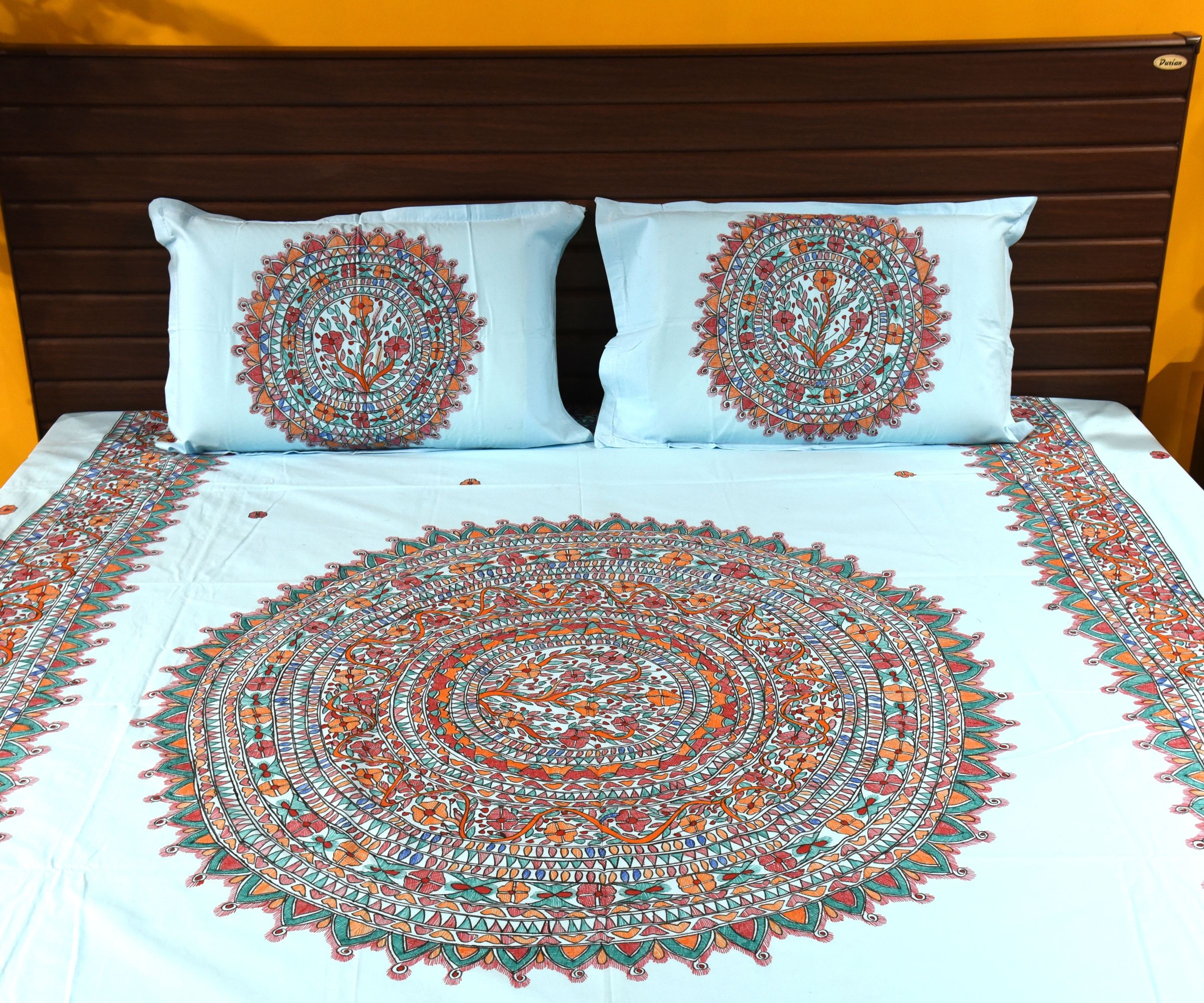 - Package Contents: 1 Madhubani Art Bedsheet and 2 Pillow Covers
