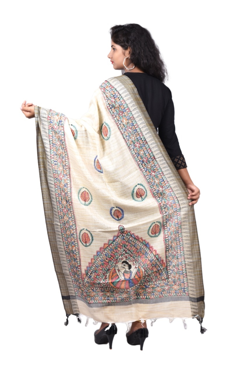 Hand-painted Artistry: Each Madhubani dupatta is meticulously hand-painted by skilled artisans. The intricate detailing and vibrant colors showcase the rich heritage of this traditional art form.