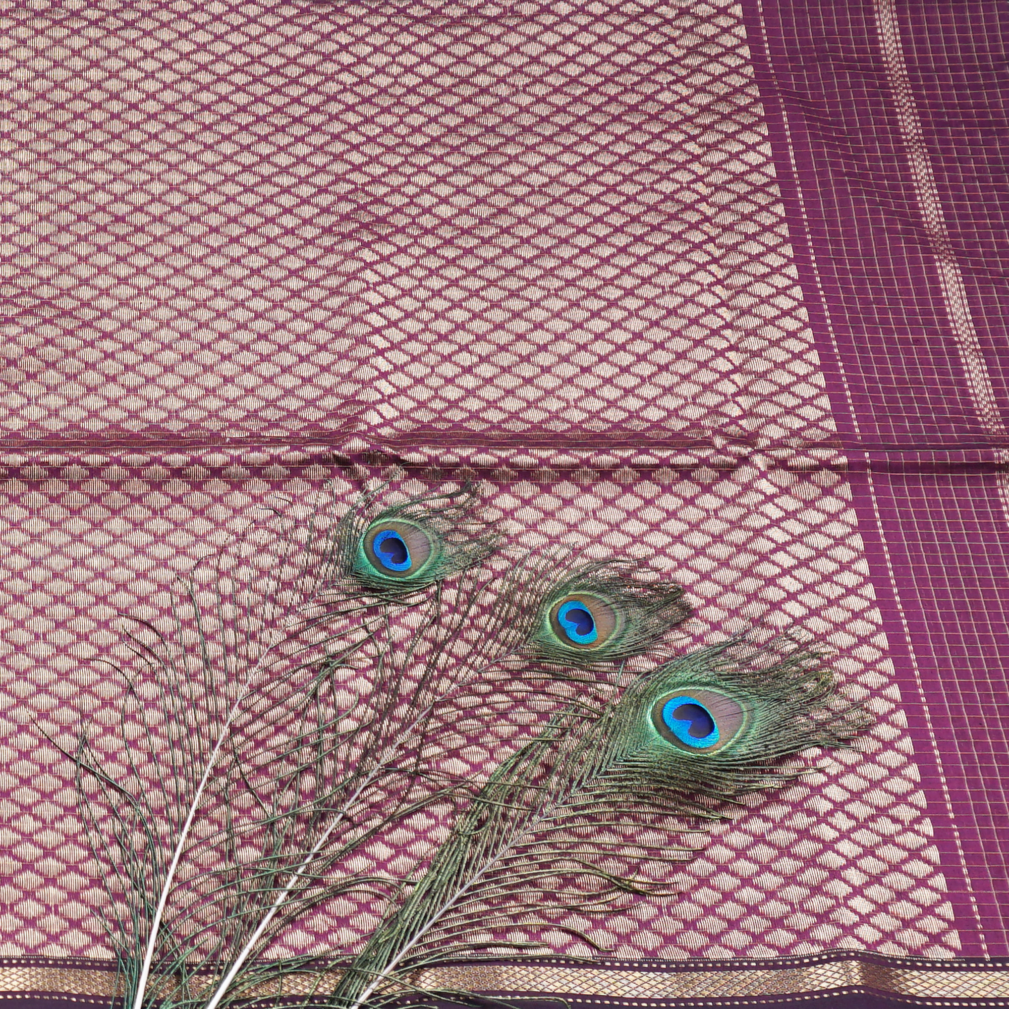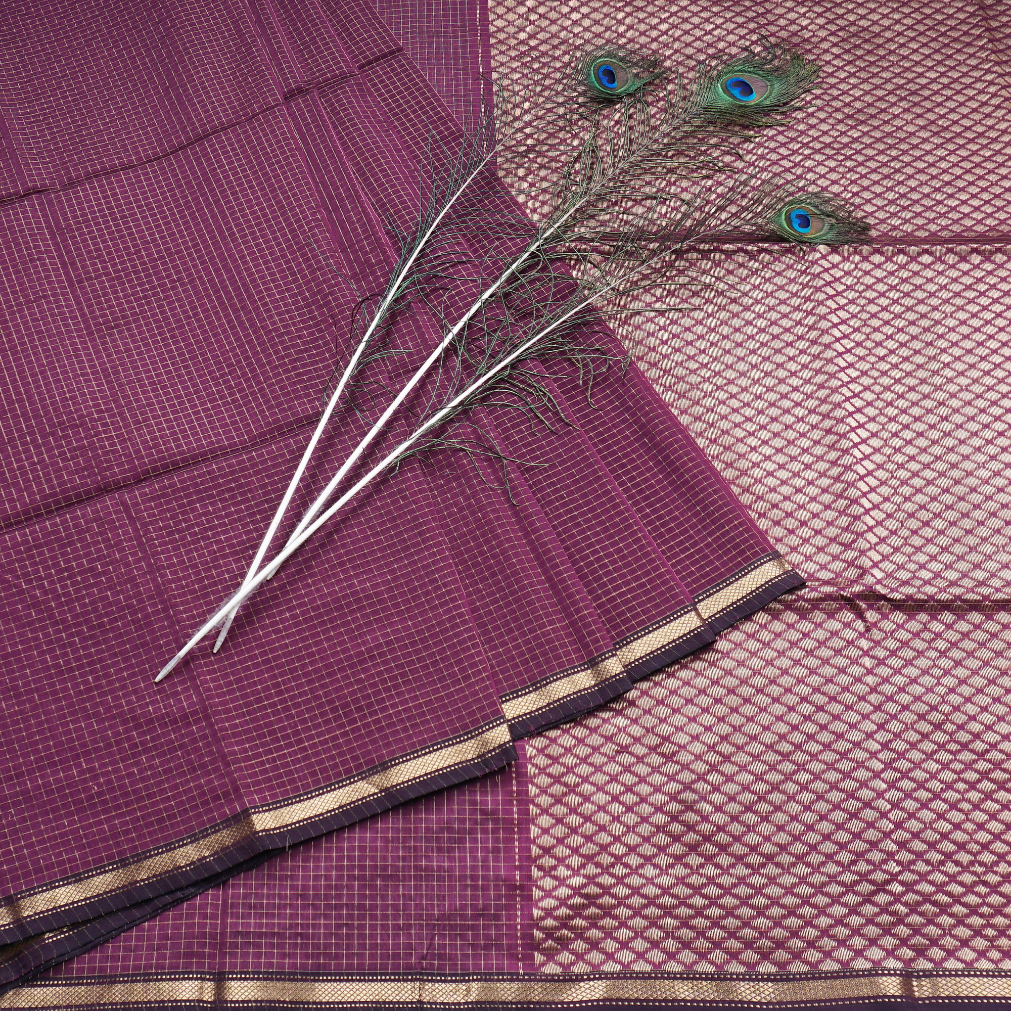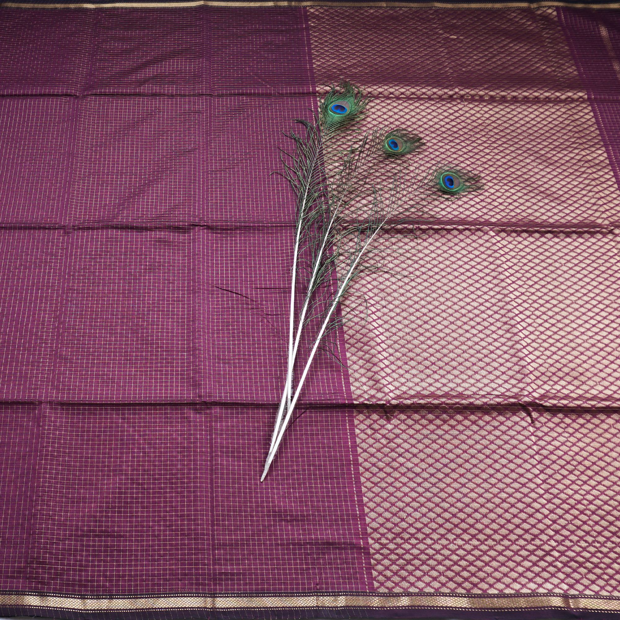 SMALL ZARI BORDER, ALL OVER THE ZARI CHECK, REACH ZARI PADAR, SILK COTTON FABRIC, WITH BLOUSE.