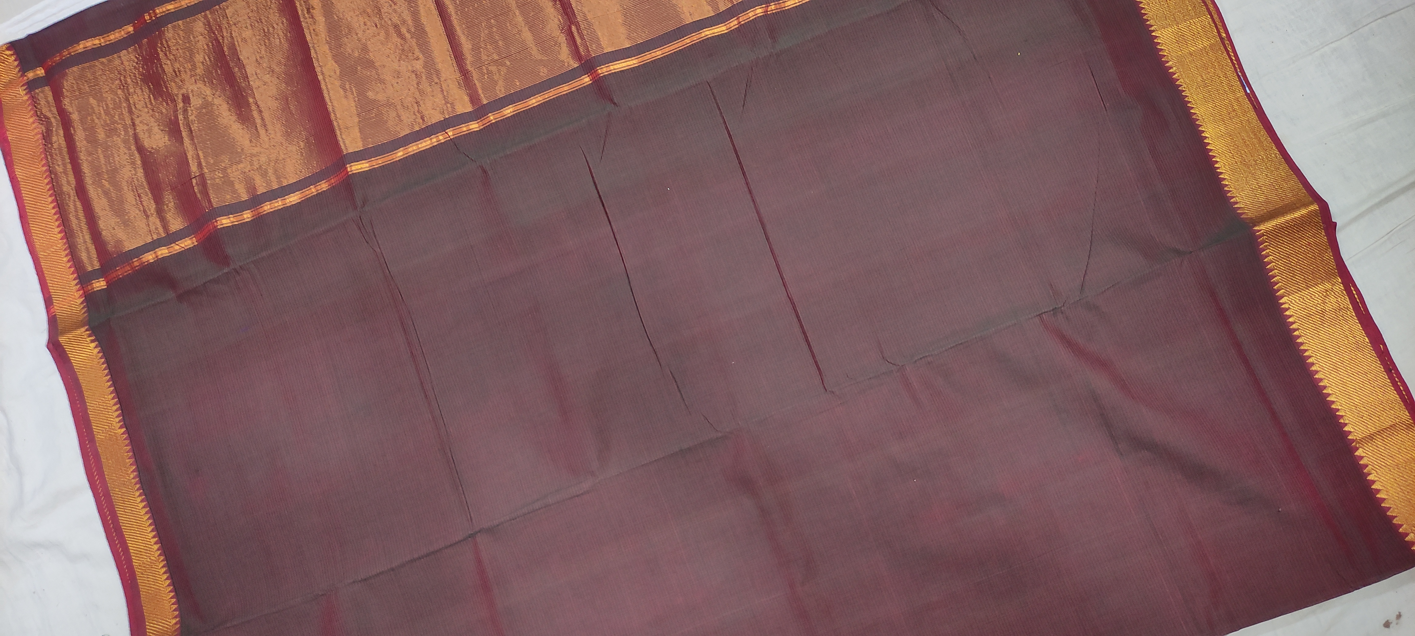 Mangalagiri saree is a fine count heavy textured saree normally woven with 80s combed cotton yarn for both warp and weft with extra warp design in the border.