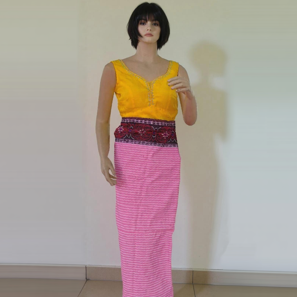 Manipuri Mapanaiba Phenek with machine embroidery border