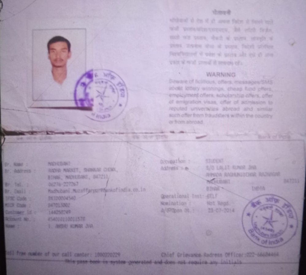 | Account Holder Name | ANSHU KUMAR JHA |