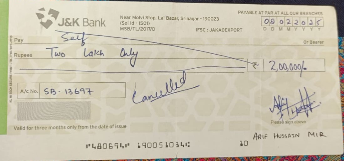 | Account Holder Name | ARIF HUSSAIN MIR |