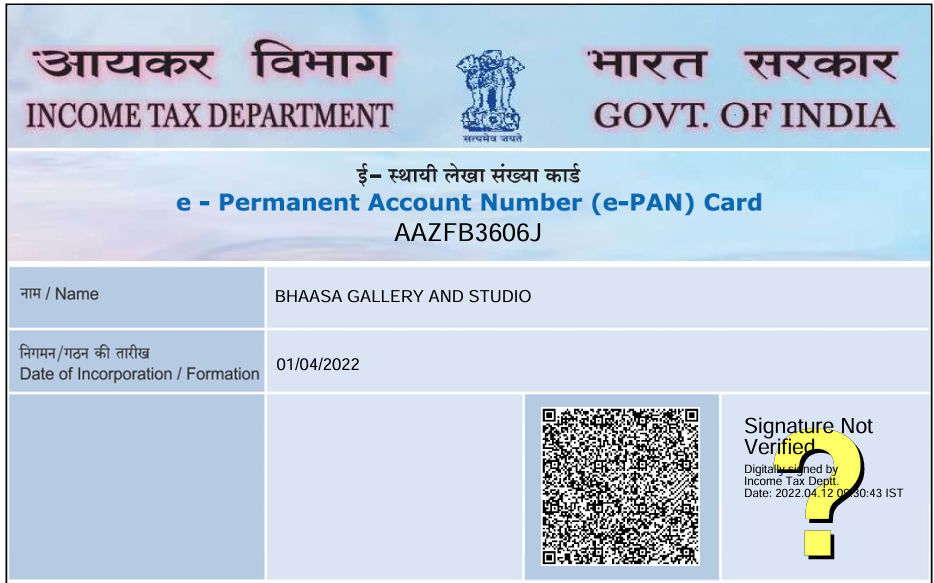 | Account Holder Name | BHAASA GALLERY AND STUDIO |