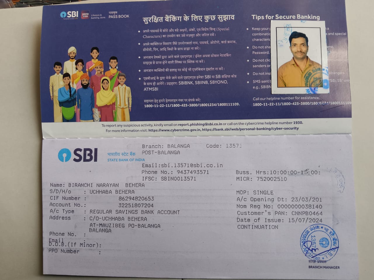 | Account Holder Name | BIRANCHI NARAYAN BEHERA |