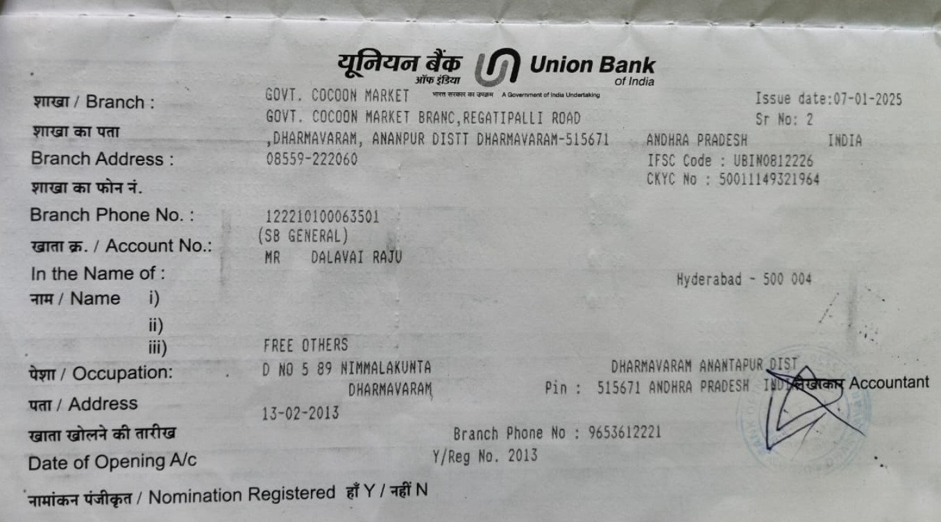 | Permanent Address | 5 89 A NIMMALAKUNTA POTHULANAGEPALLI DHARMAVARAMU |