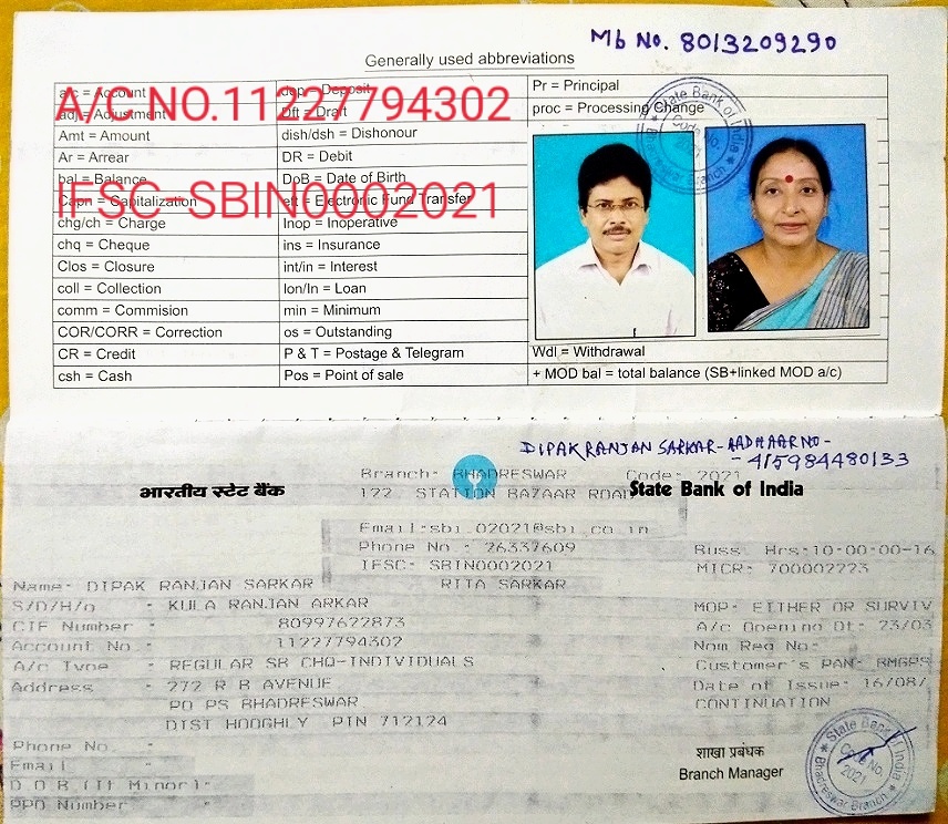 | Account Holder Name | DIPAK RANJAN SARKAR |