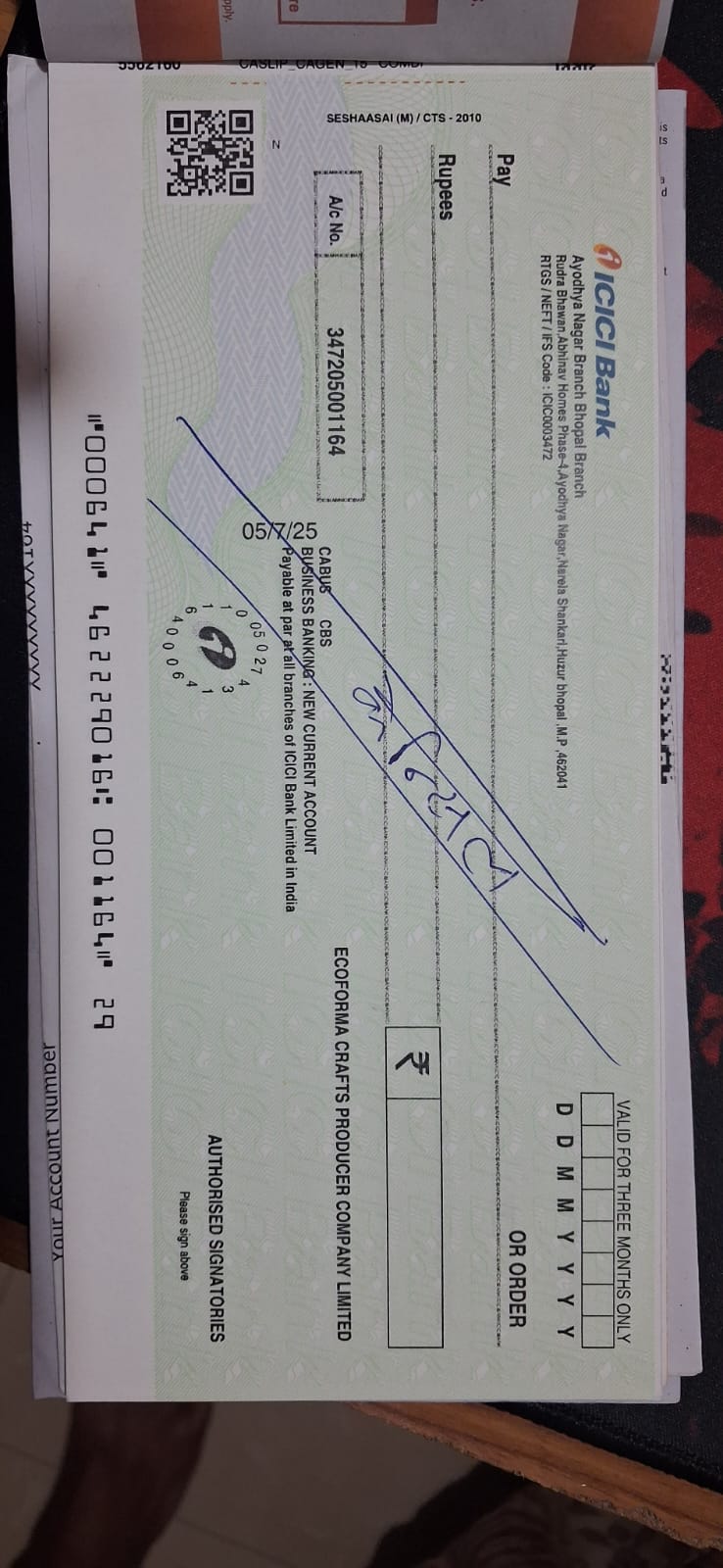 | Account Holder Name | ECOFORMA CRAFT PRODUCER COMPANY LIMITED |