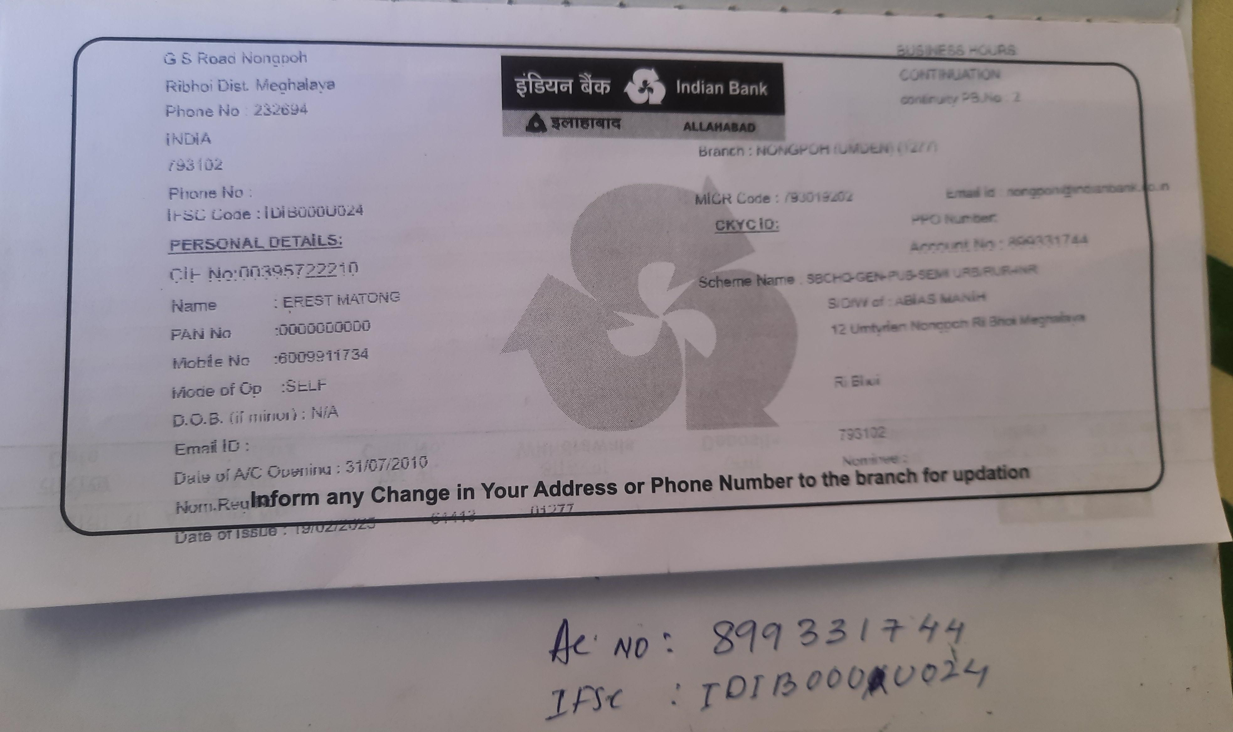 | Permanent Address | 12 Umtyrlen Dakhing ganesh nagar Umling RI BHOI Meghalaya |
