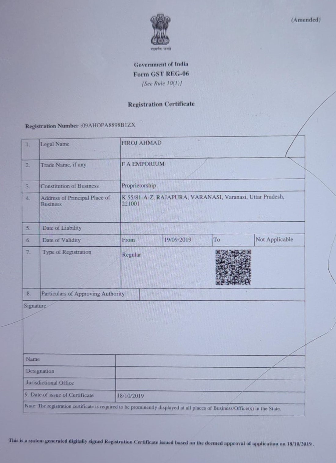 | GST/Enrollment ID | 09AHOPA8898B1ZX |