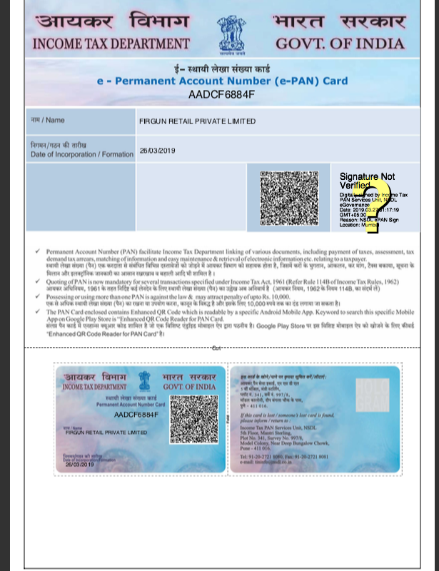 | Account Holder Name | Firgun Retail Private Limited |