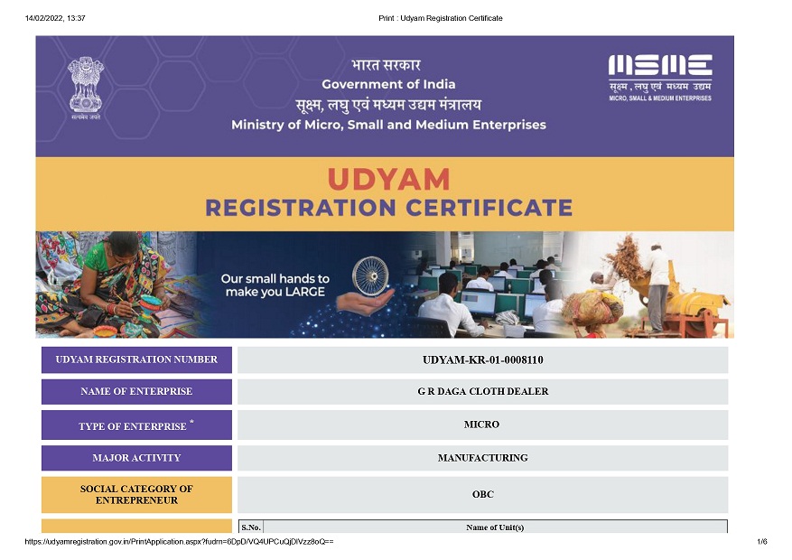 | Organization Registration ID | UDYAM-KR-01-0008110 |