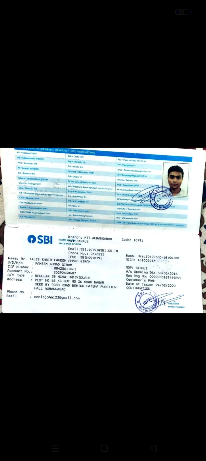 | Account Holder Name | TALEB KABIR FAHEEM AHMAD GIRAM |