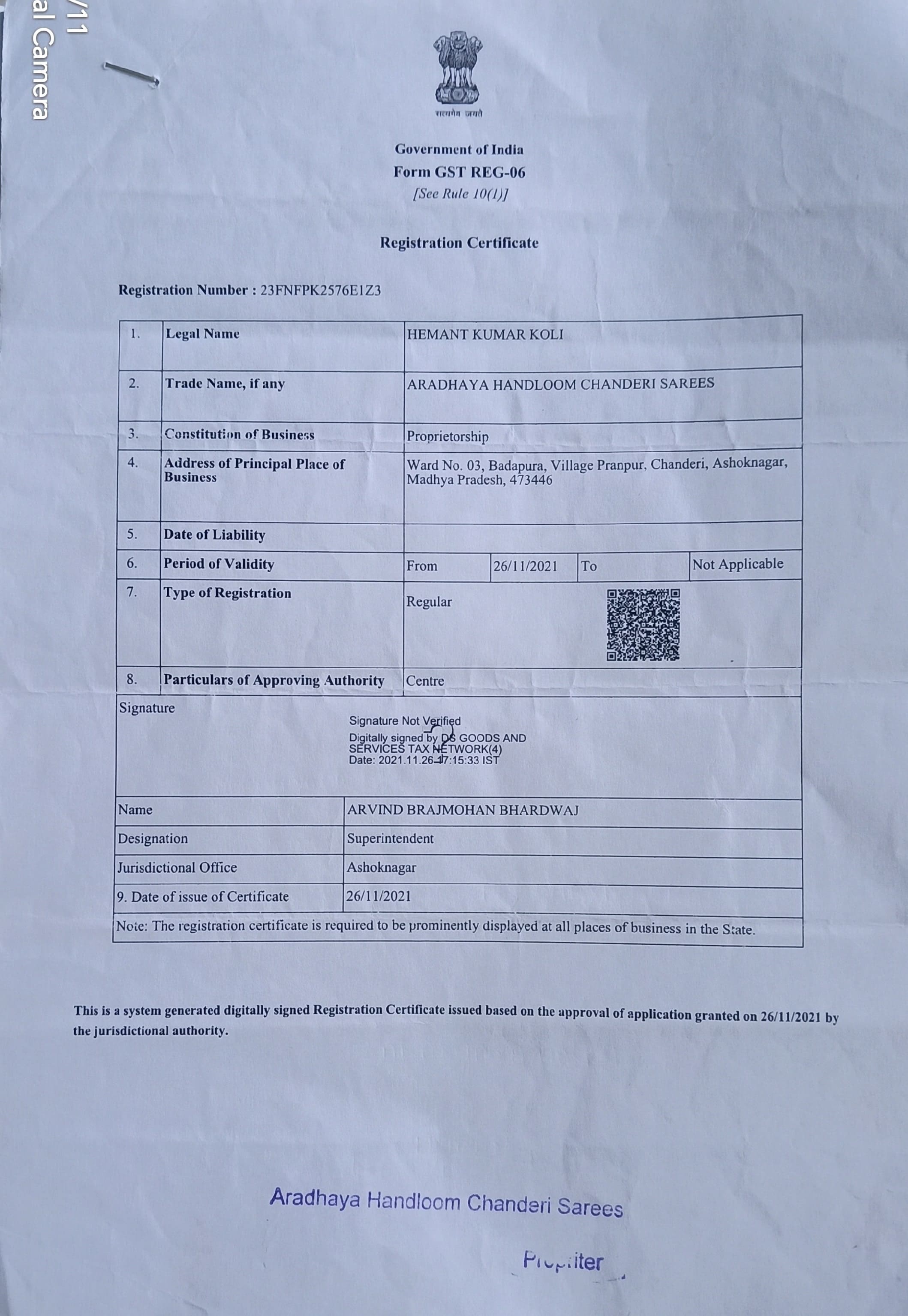 | GST/Enrollment ID | 23FNFPK2576E1Z3 |