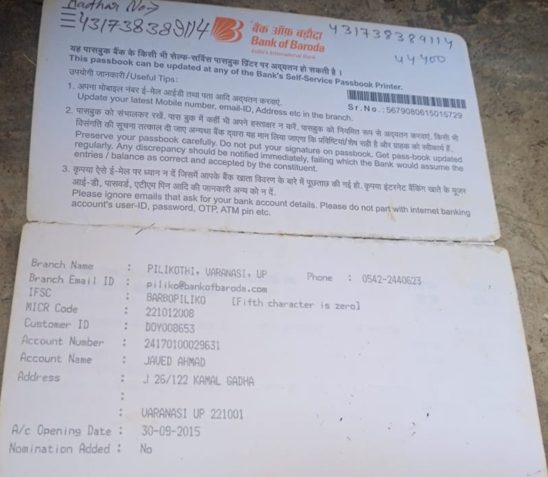 | Account Holder Name | JAVED AHMAD |