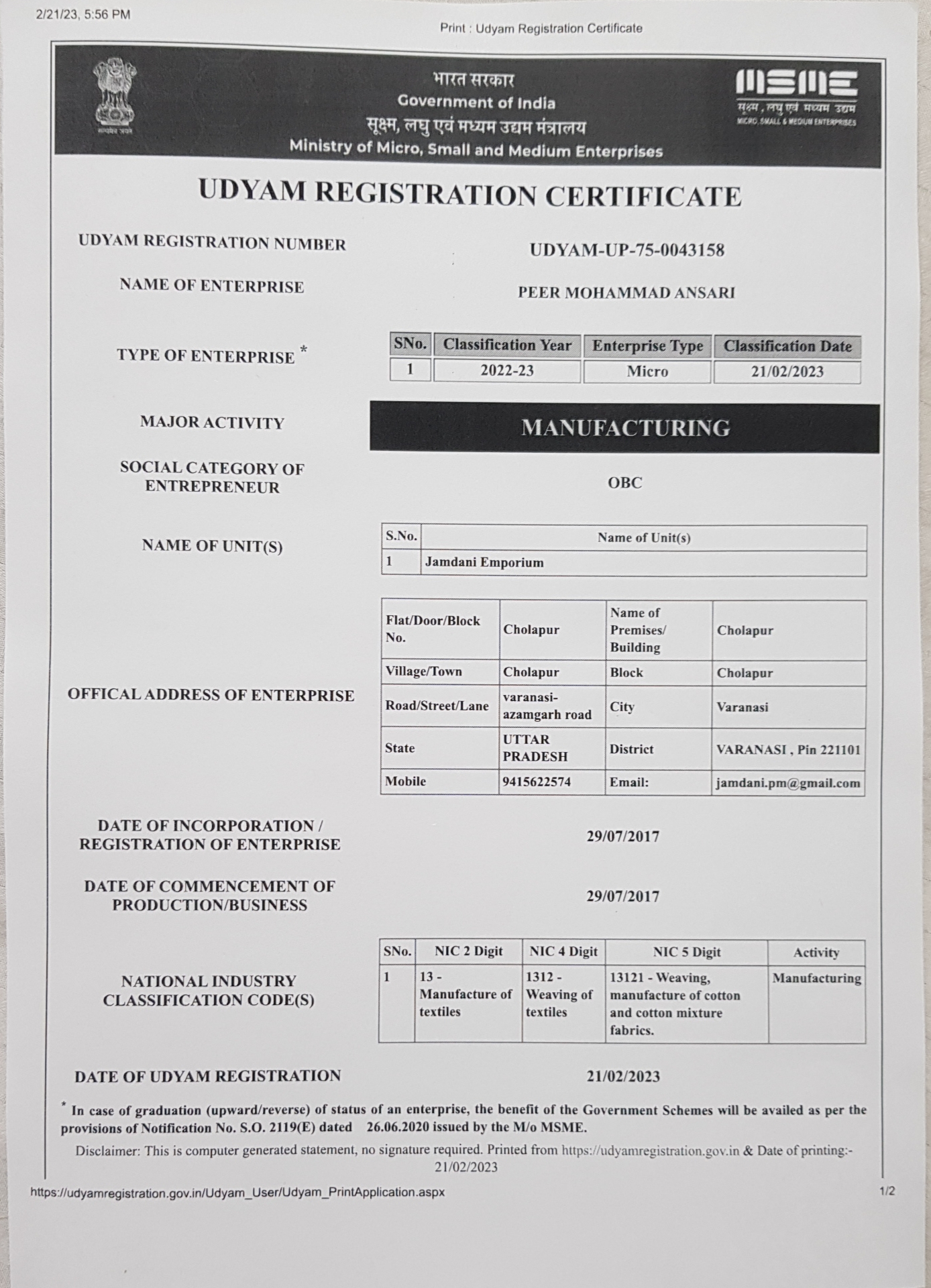 | Organization Registration ID | UDYAM-UP-75-0043158 |