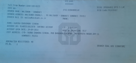 | Account Holder Name | KANIKA CHOUDHURY SINGMA |