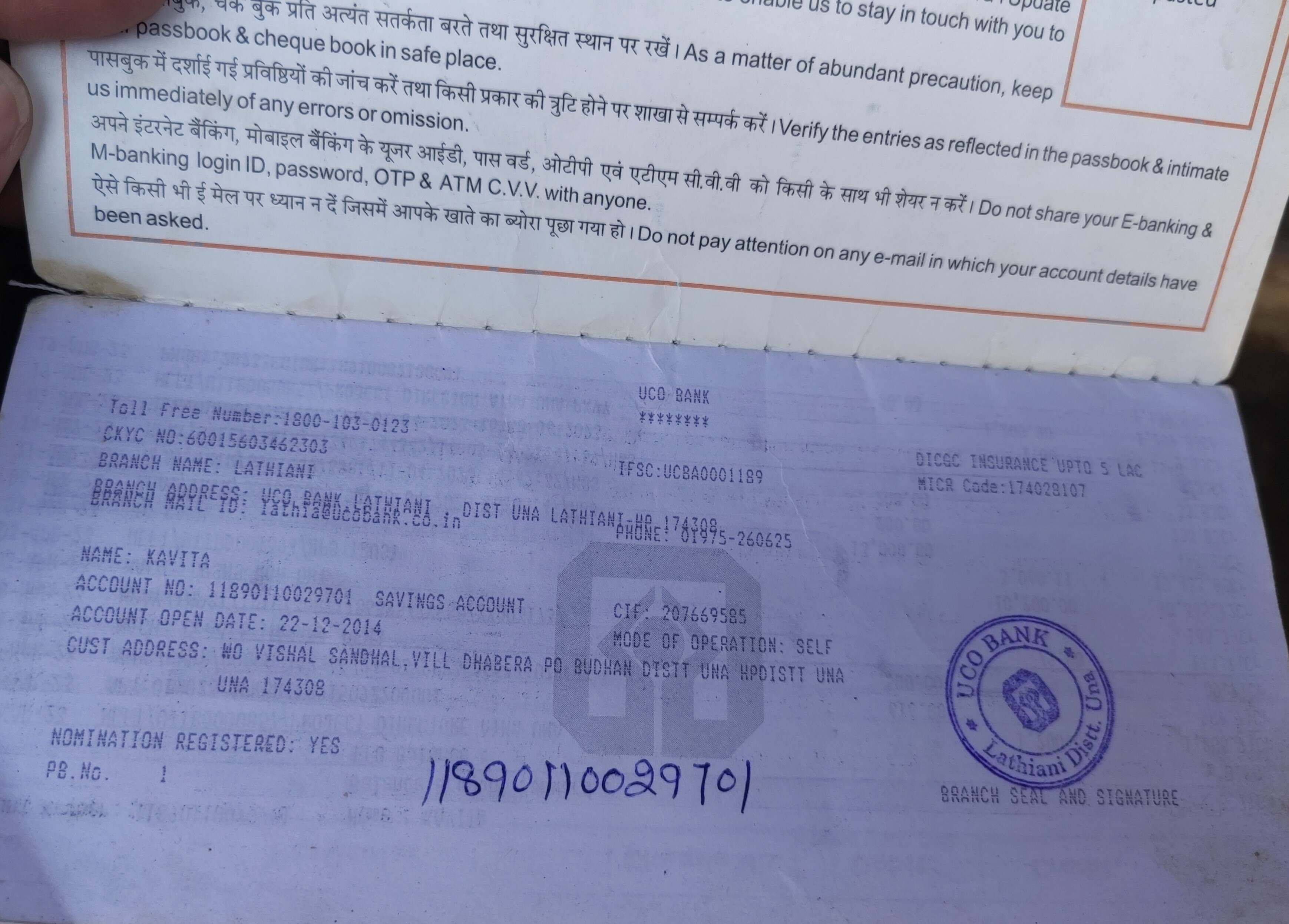 | Account Holder Name | KAVITA |