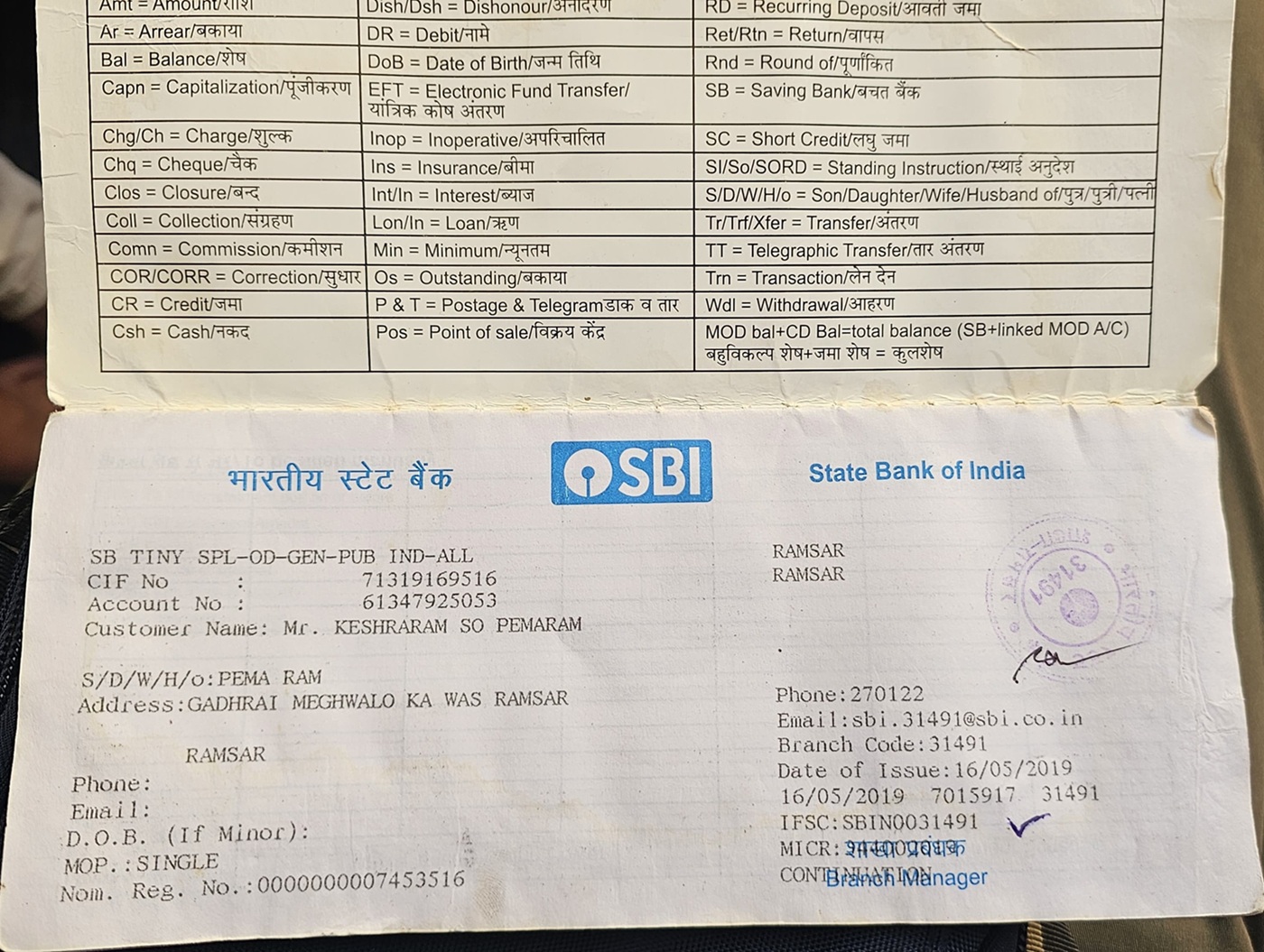 | IFSC | SBIN0031491 |