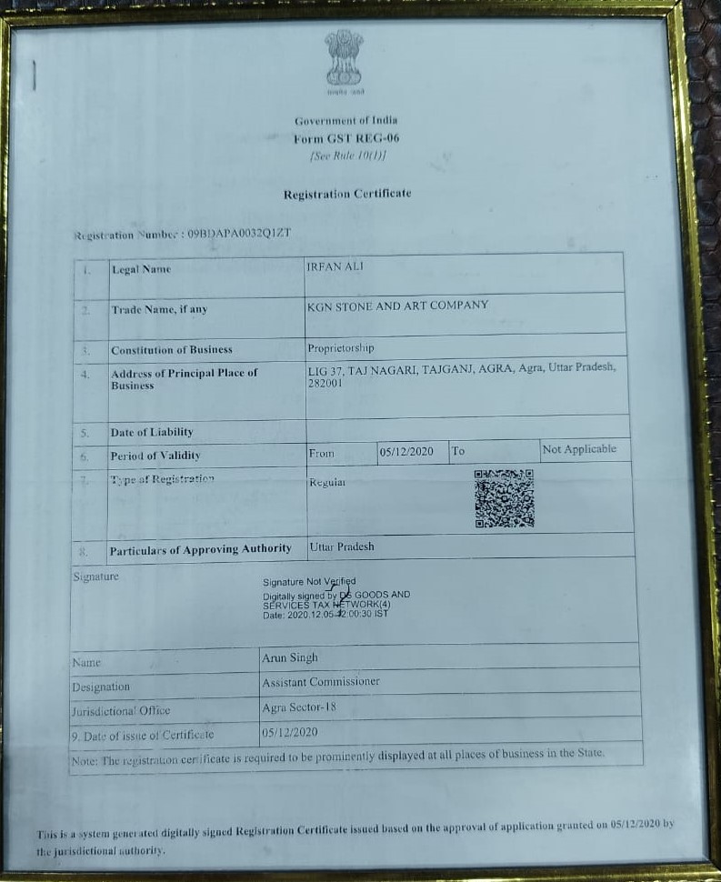 | Account Holder Name | KGN STONE AND ART COMPANY |
