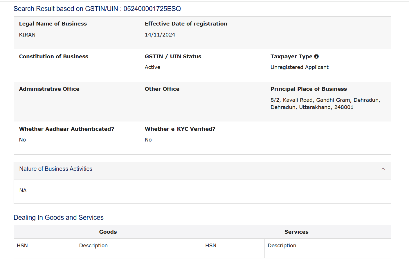 | GST/Enrollment ID | 052400001725ESQ |