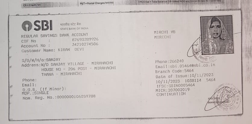 | Account Holder Name | KIRAN DEVI |