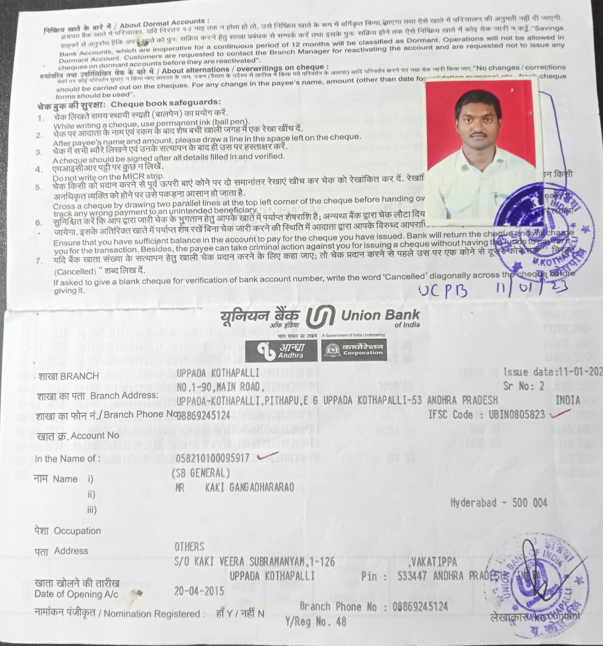 | Account Holder Name | KAKI GANGADHARA RAO |
