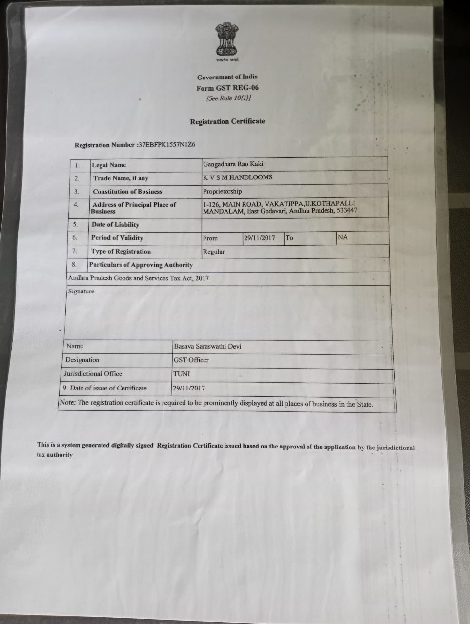 | GST/Enrollment ID | 37EBFPK1557N1Z6 |