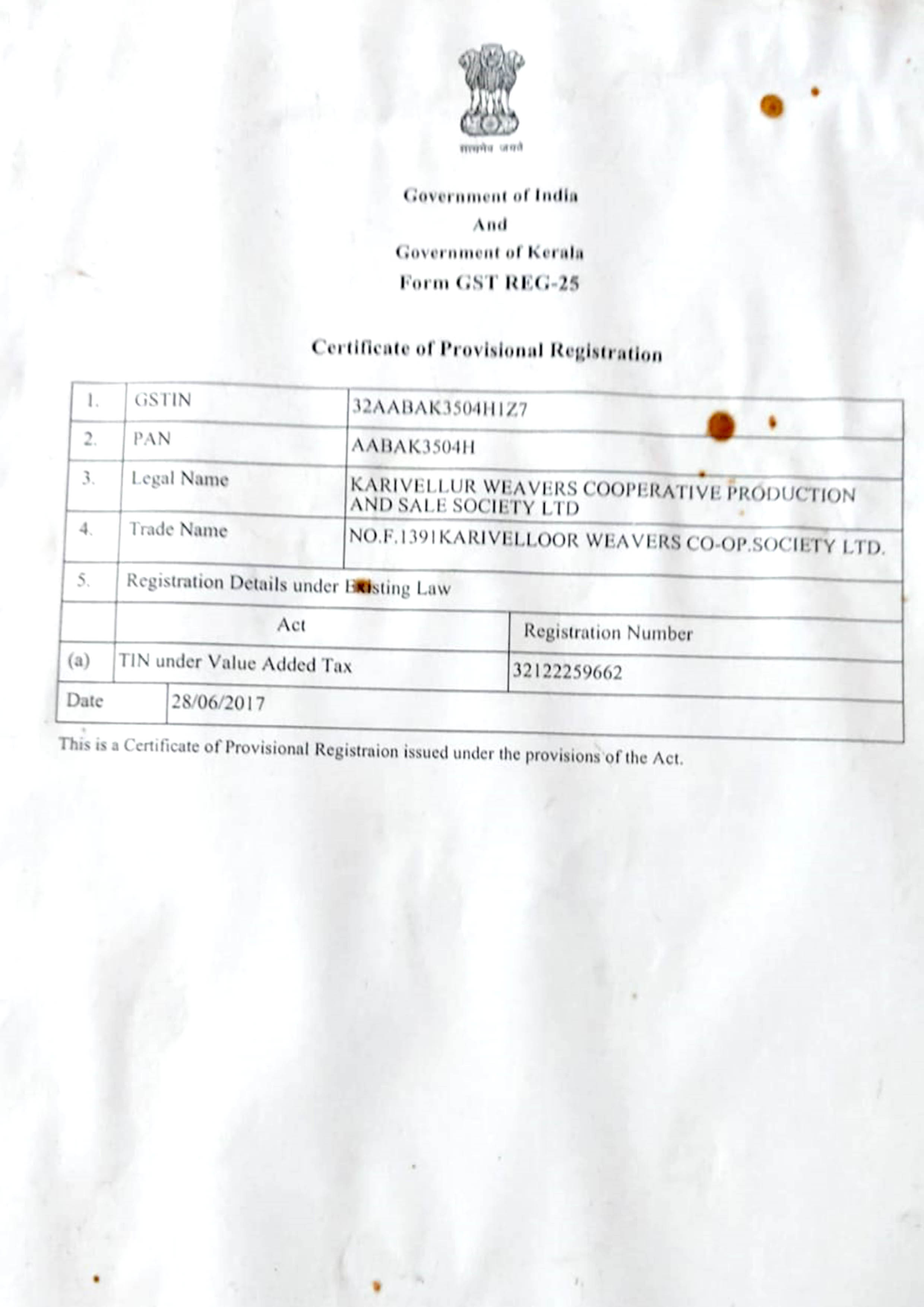 | Seller Name | The Karivellur Weavers Cooperative P & S Society Ltd No F 1391 |